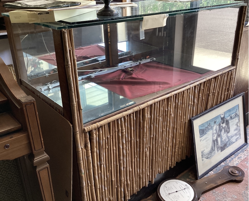 VTG. RATTAN DESIGN TABLE TOP GLASS DISPLAY,