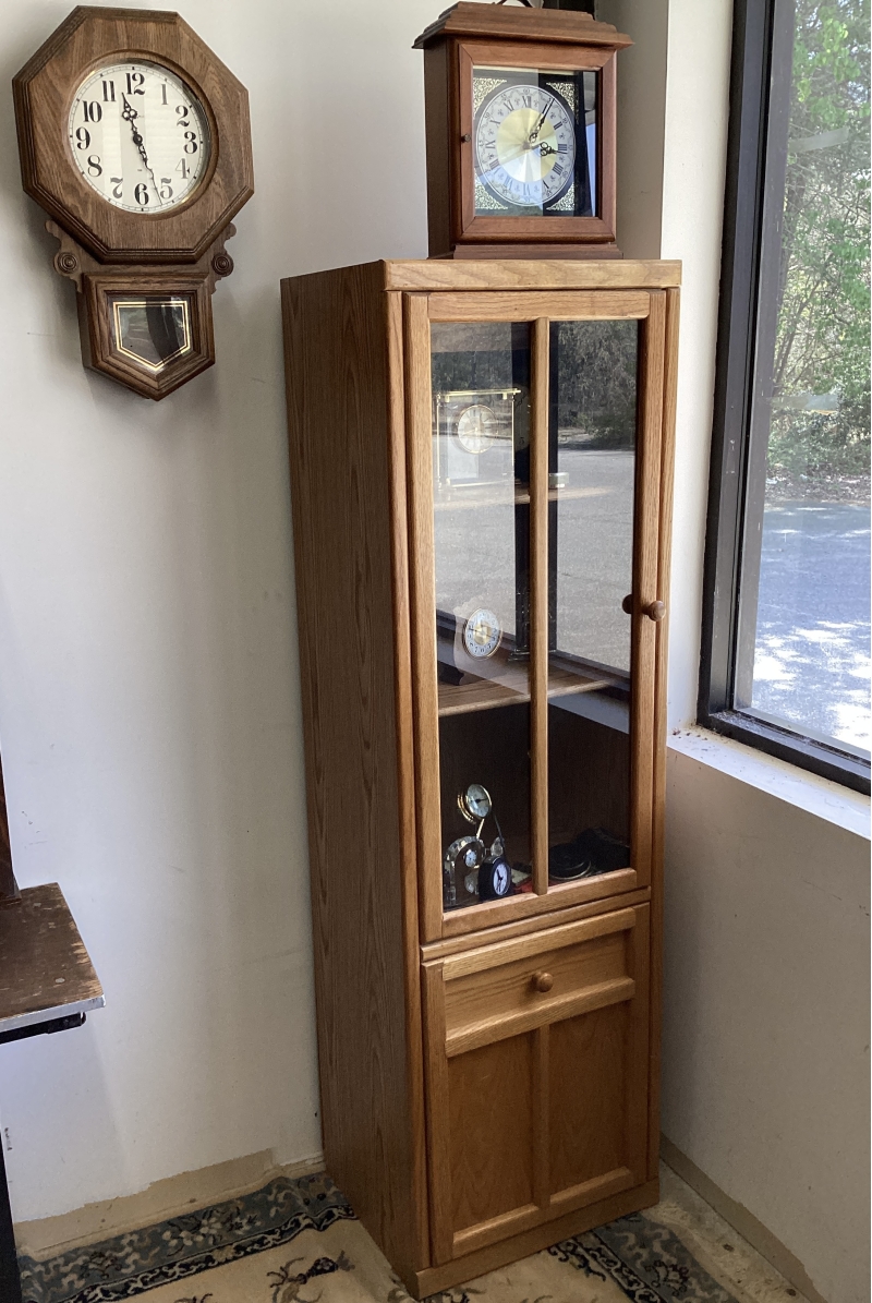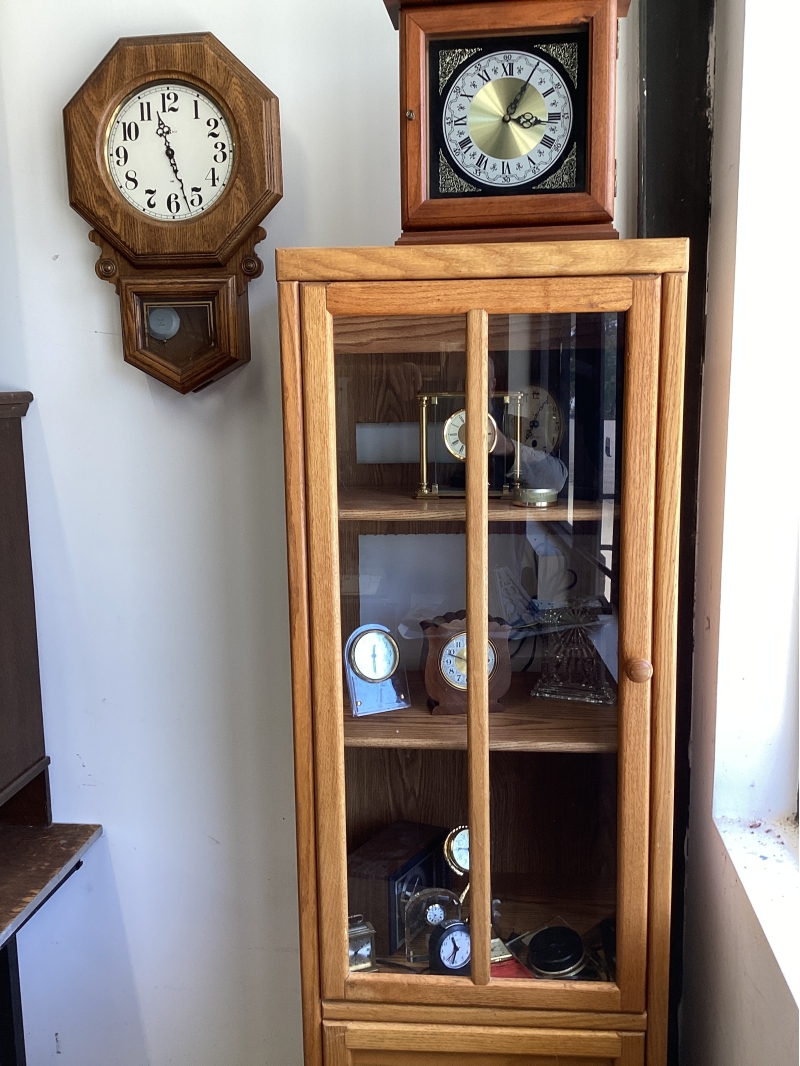 CURIO CABINET, MANTEL CLOCKS, DESK CLOCKS,