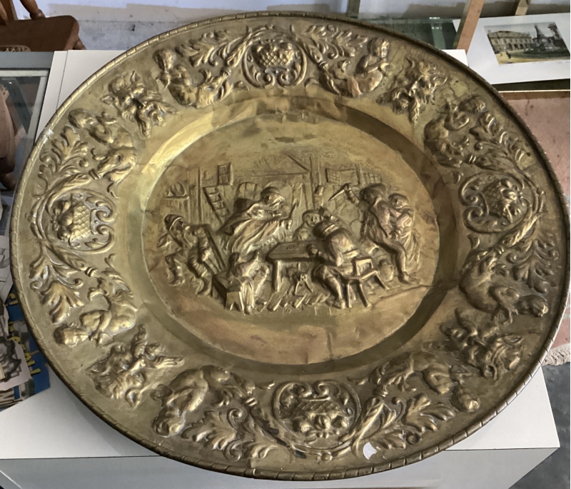 VINTAGE EMBOSSED BRASS ORNATE WALL PLAQUE,