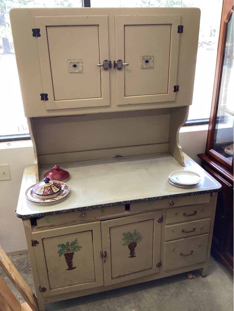 VTG. HOOSIER KITCHEN CABINET WITH ENAMEL TOP,