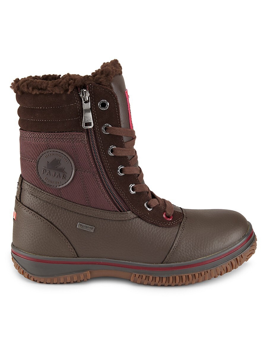These Tour faux fur-lined boots from Pajar are constructed with a quilted exterior for added texture and warmth. A logo patch adorns the side, enhancing their distinctive style. Round toe Lace-up vamp with side zip Leather, synthetic & textile upper Textile lining Padded insole Synthetic sole Fur type: Faux Imported. Center Core - M Core Shoes > Saks Off 5th. Pajar. Color: Brown. Size: 13.