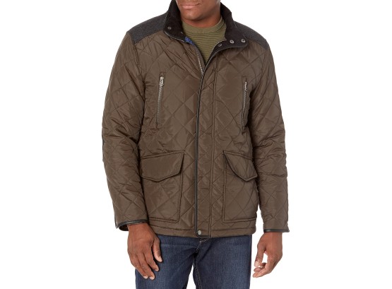 Herringbone wool yoke Corduroy inside collar and placket facing Faux leather trims Weave type: woven