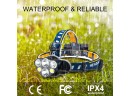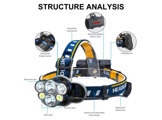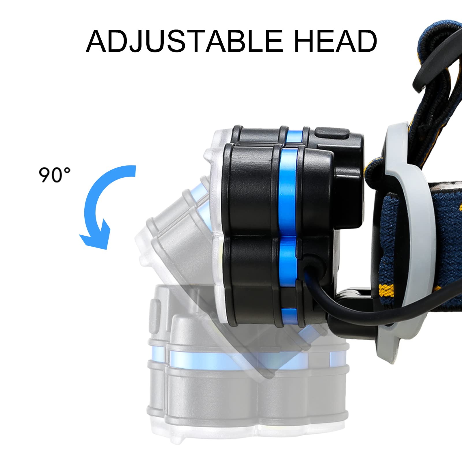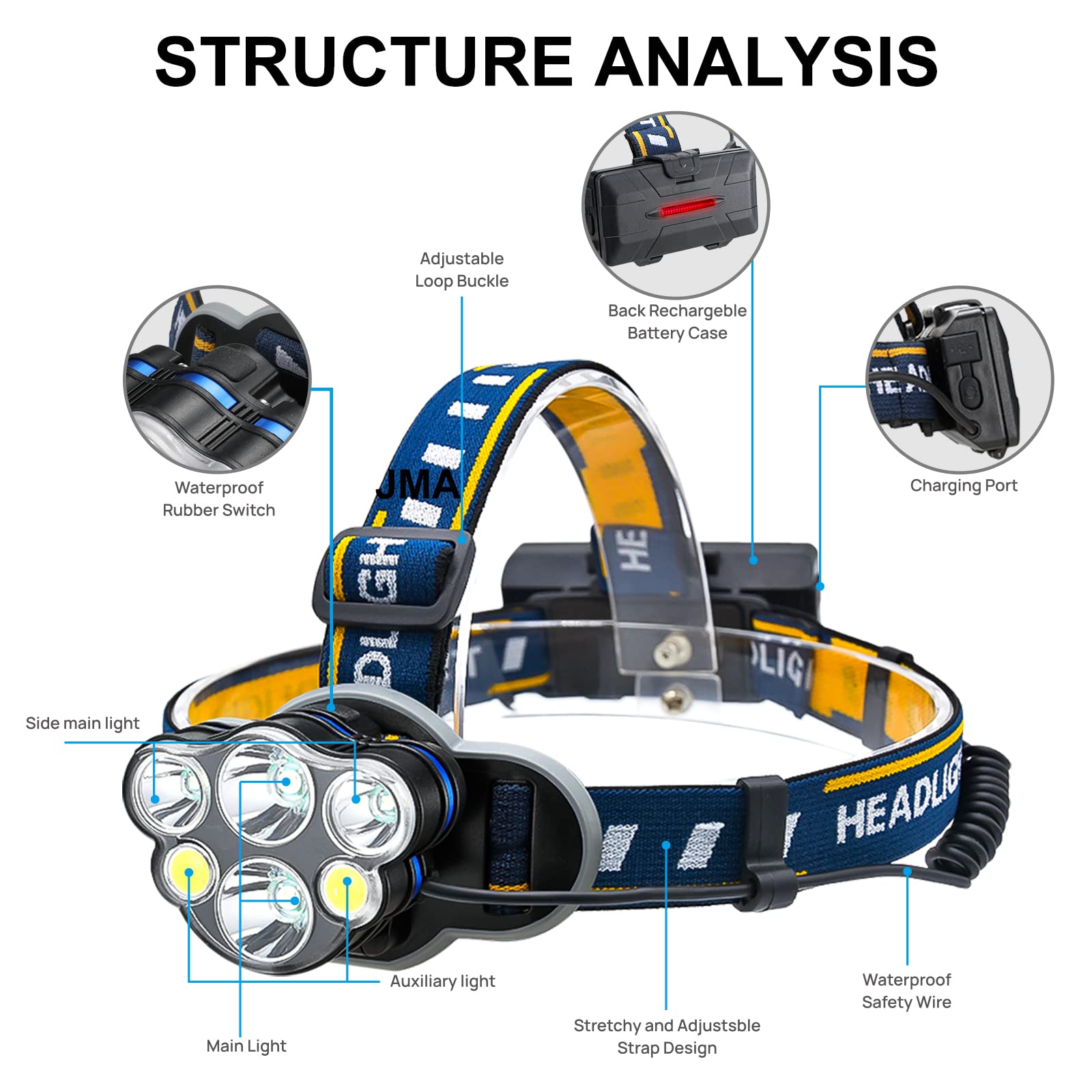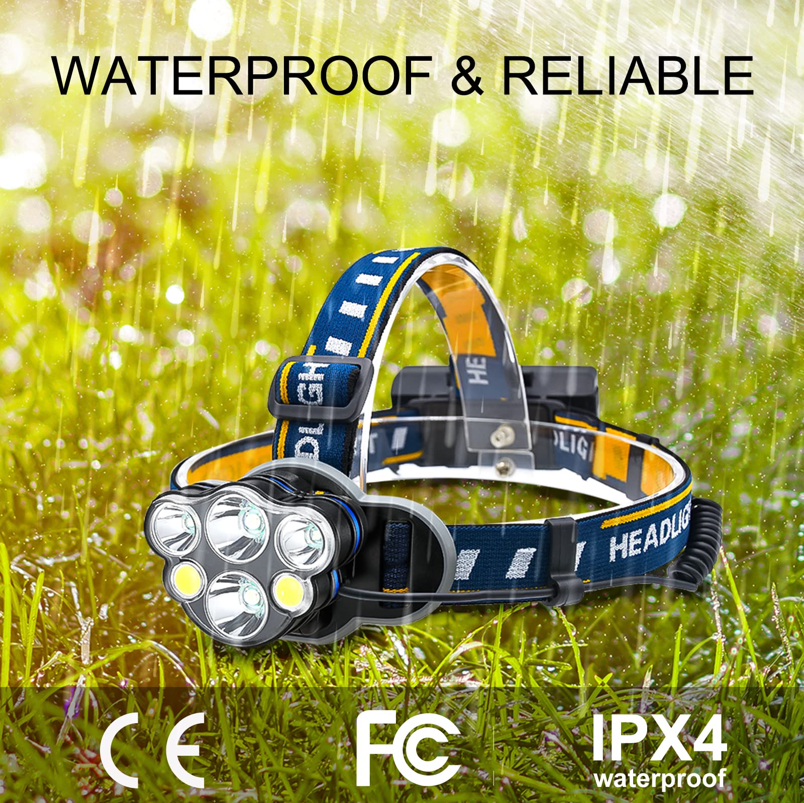 【Super Bright & 8 Lighting Modes】 Headlamp flashlight equipped with 6 LEDs and a safety red taillight. The LED headlight has 8 lighting modes to meet your various needs. ①One simple switch to control two different modes. Press the switch to control the primary light mode from high, low, all, and SOS strobe. ②Press the switch for 2-3s to control the auxiliary light mode from high, low, red light, and SOS strobe. 【USB Rechargeable Headlamp】 With an integrated USB charging port, the headlight is as convenient as it gets. Built-in rechargeable high-capacity battery, you can plug it into your car, the garage, or the kitchen—it's ready to go when you are. 【Long-Lasting & Durable】 The headlamp if fully charged will provide up to 4-9 hours of constant light on a single charge (USB cable included). Even if you really got into an all-night epic, the headlight can keep you lit through the long dark hours. 【IPX-4 Water Resistant & 90-degree Adjustable】 The head lamp have passed the IPX4 waterproof certification. the IPX4 water-resistant grade allows you to use the rechargeable headlamp even when it’s raining. The head flashlight uses a comfortable elastic headband that can be adjusted to perfectly fit the forehead size of adults and children with a simple adjustment. 【Light Head Lamps & Hands-Free】 The headlamp with a hand-free design and lightweight of about 0. 3 pounds keeps your hands free while outdoor camping, jogging, cycling, night racing, fishing, hunting, hiking, reading, car repair, and various night activities.
