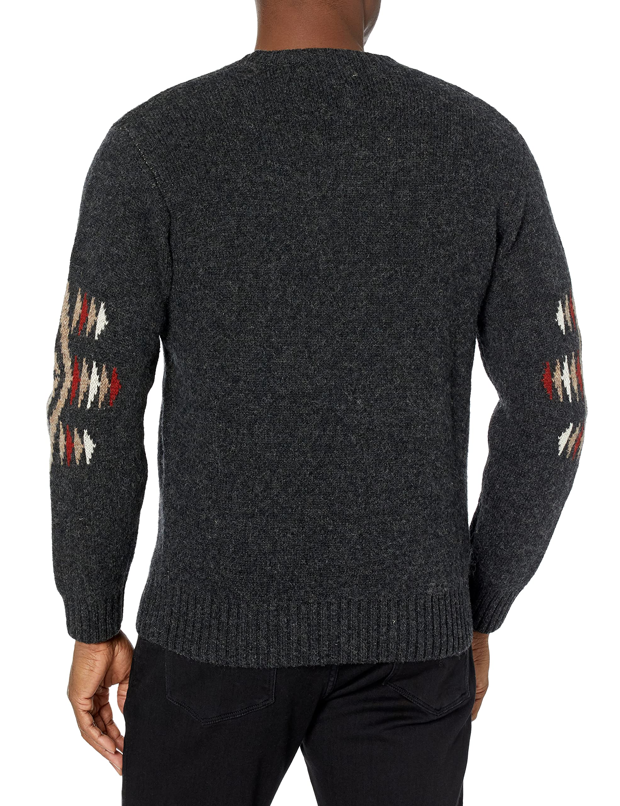 100% Shetland wool Pattern on front chest and sleeves Ribbed neck, cuff and hem