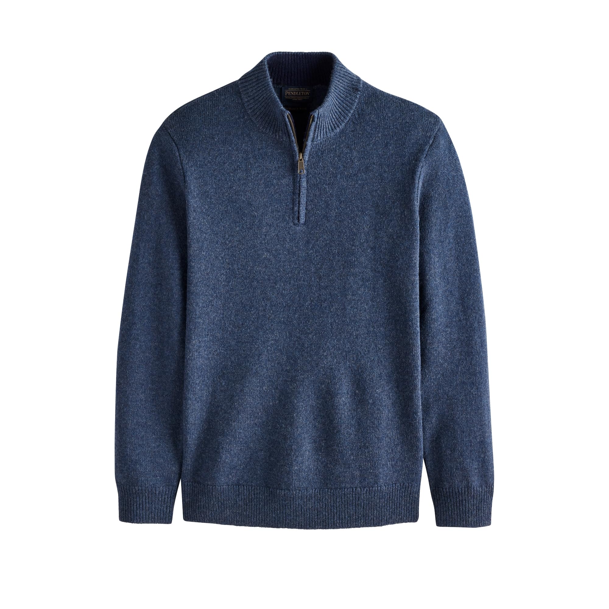 Ribbed mock neck leather zipper pull ribbing at cuffs and hem Machine washable 100% wool, imported