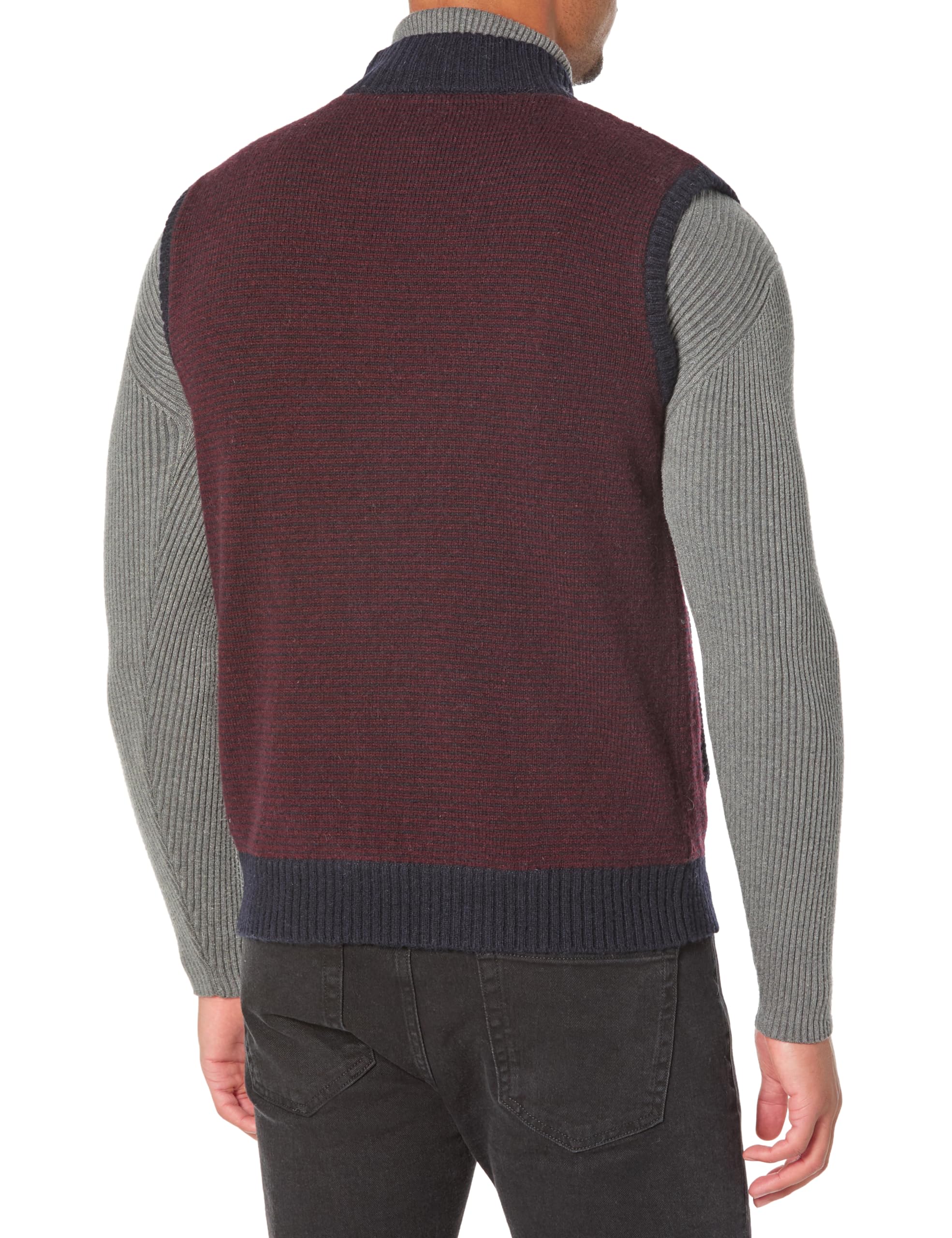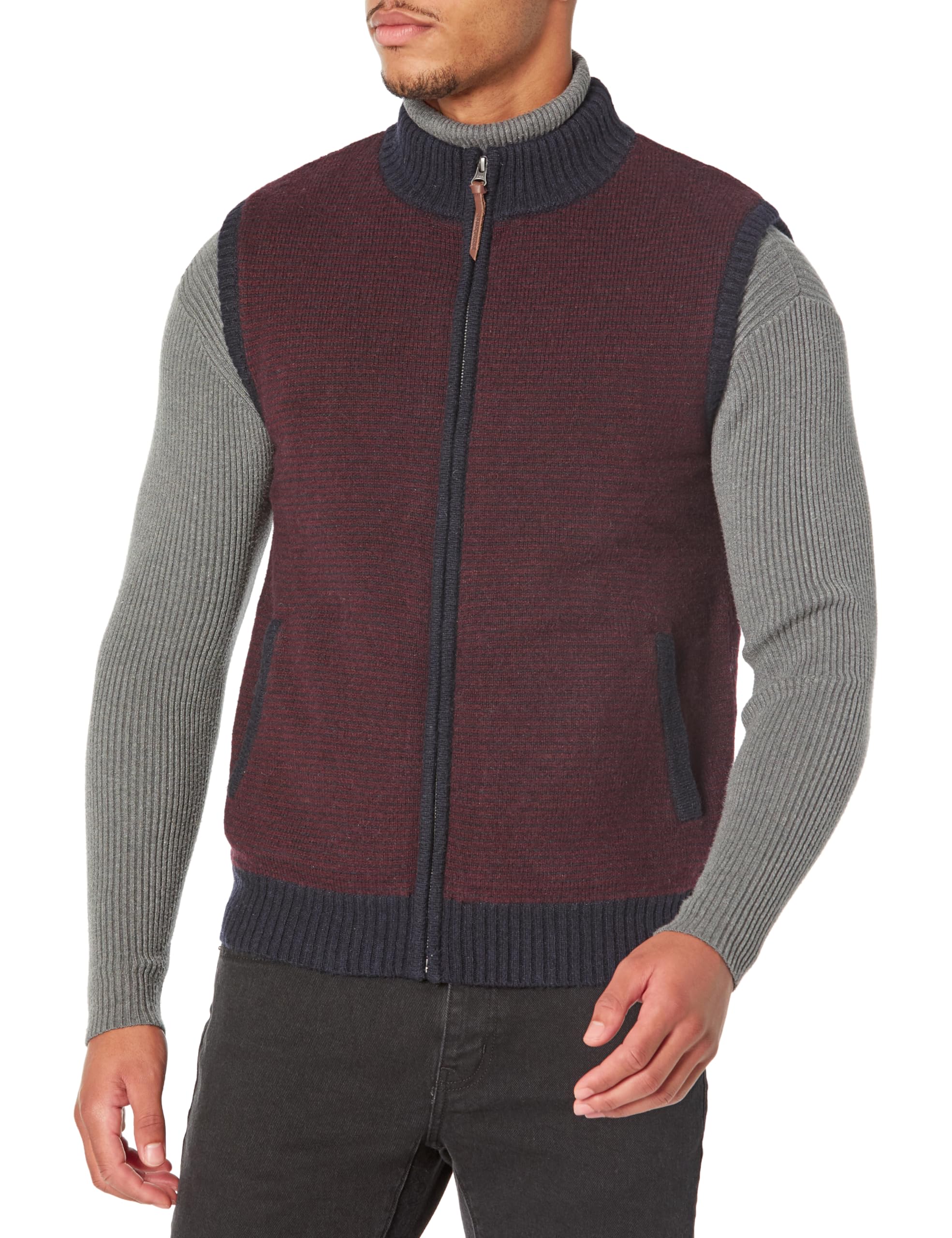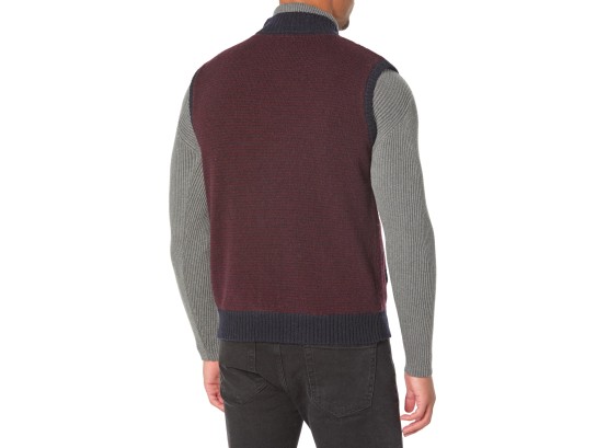 Washable wool for this sweater is sourced from New Zealand, known for humane and sustainable sheep ranching. Zip front, with mock neck leather zipper pull