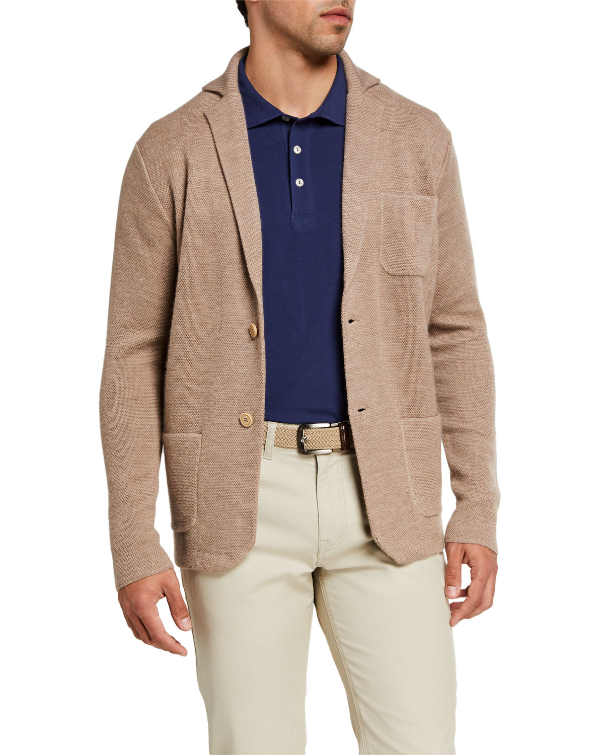 Peter Millar "Caribbean" cardigan jacket. Notched collar; two-button front. Chest and side patch pockets. Straight hem. Cashmere/silk/hemp. Hand wash. Made in England.