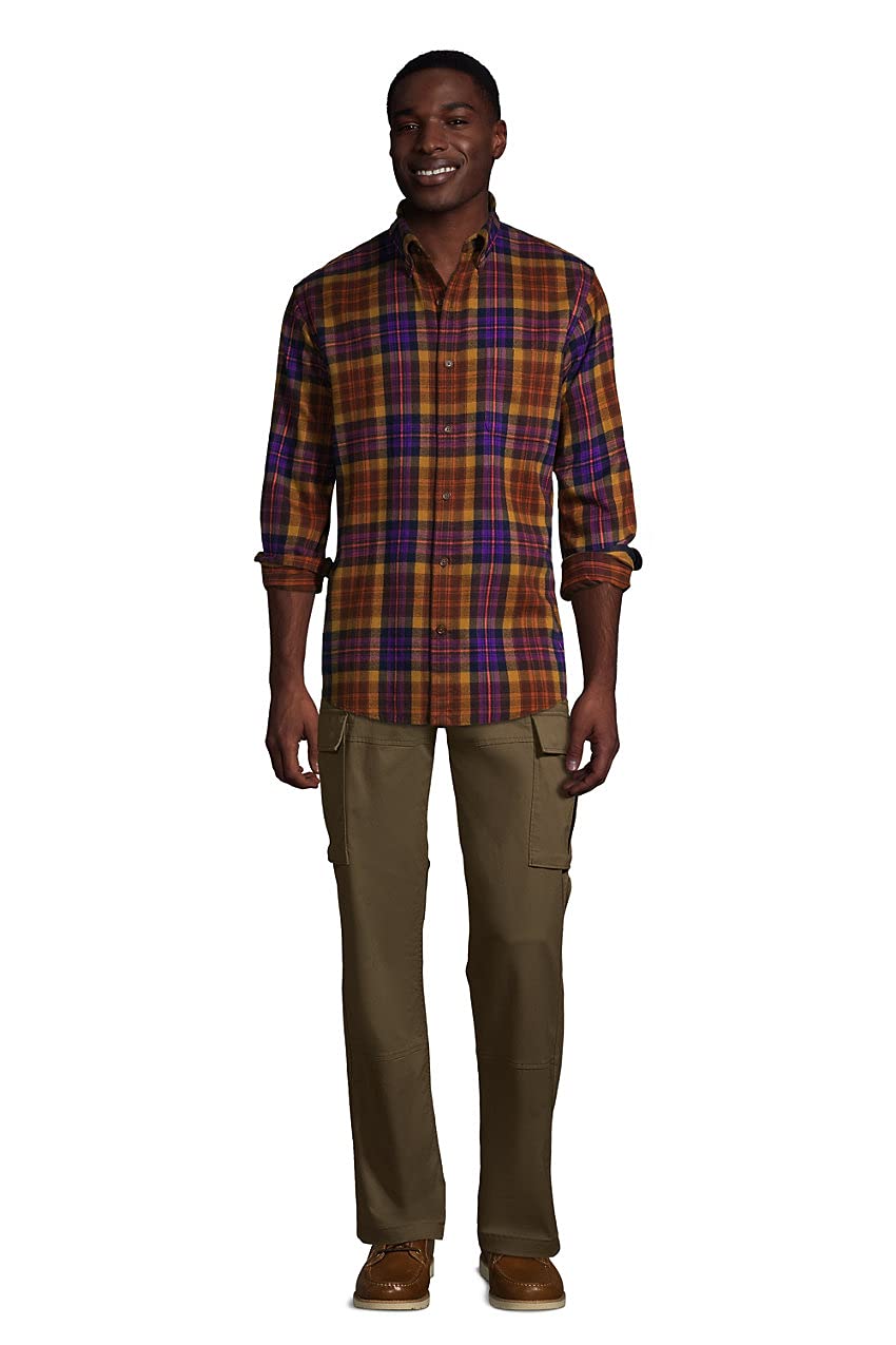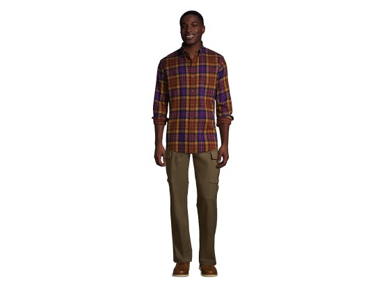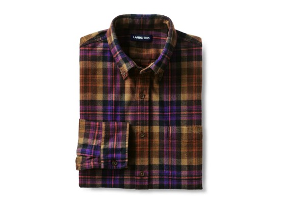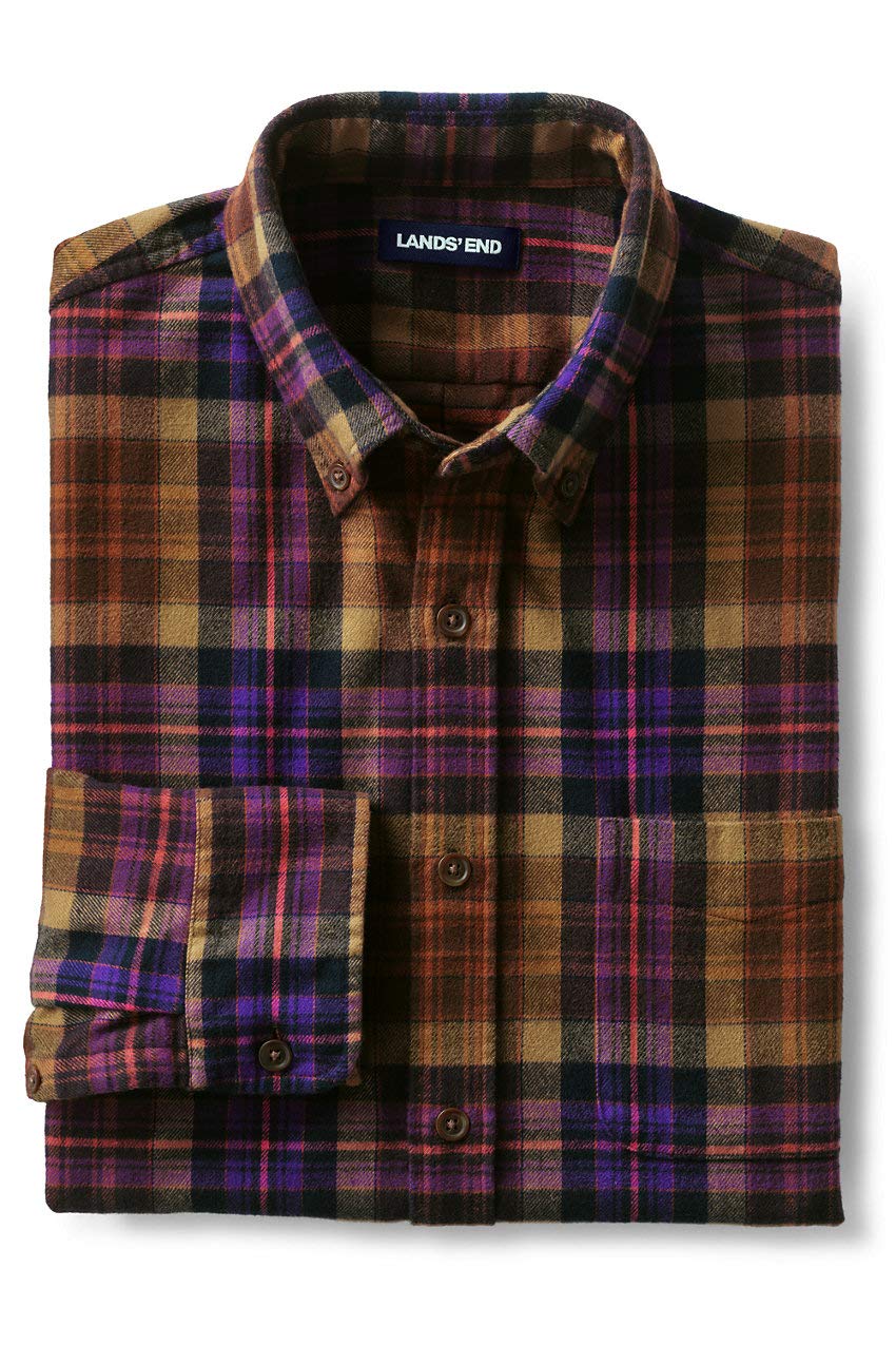 Lands' End Mens Traditional Fit Flagship Flannel Shirt Brown/Purple Plaid Regular XX-Large