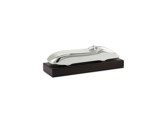 Handcrafted sleek model car made from silverplated resin. Features a classic walnut wood base. Silver plated resin walnut base. 3"W x 14"L. Made in Spain.