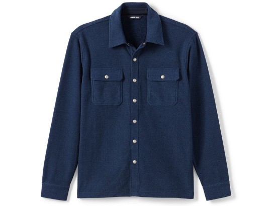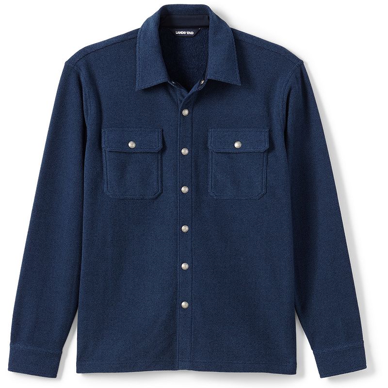 Achieve a handsome casual look with this men's button-down shirt jacket from Lands' End. Achieve a handsome casual look with this men's button-down shirt jacket from Lands' End. 2-pocket Textured, anti-pilling fabric Long sleeves Snap frontFIT & SIZING Classic fitFABRIC & CARE Polyester Machine wash Imported Size: XXL. Color: Navy. Gender: male. Age Group: adult.