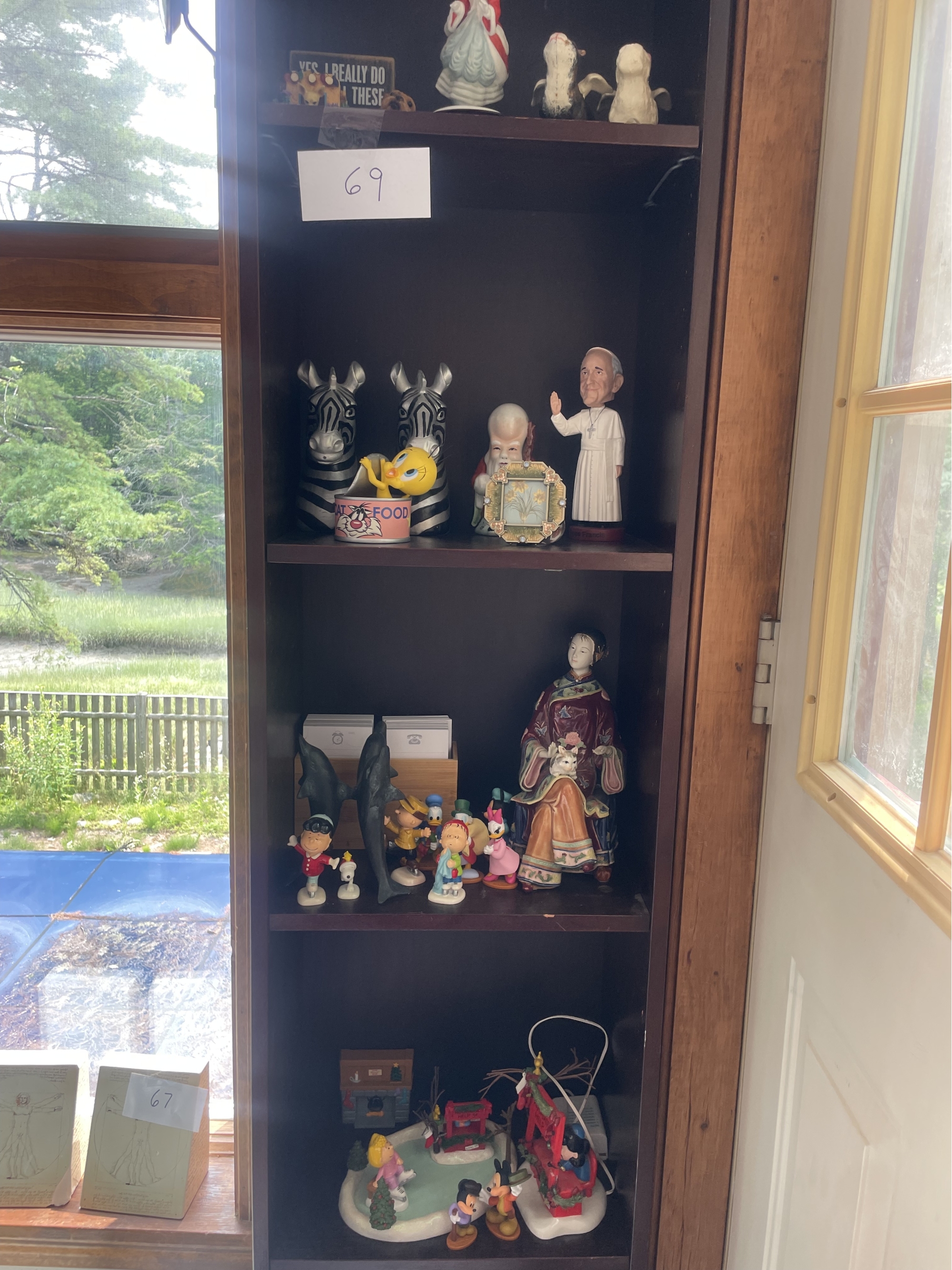 Including Peanuts characters, an asian seated woman height 10.5 inches, etc.