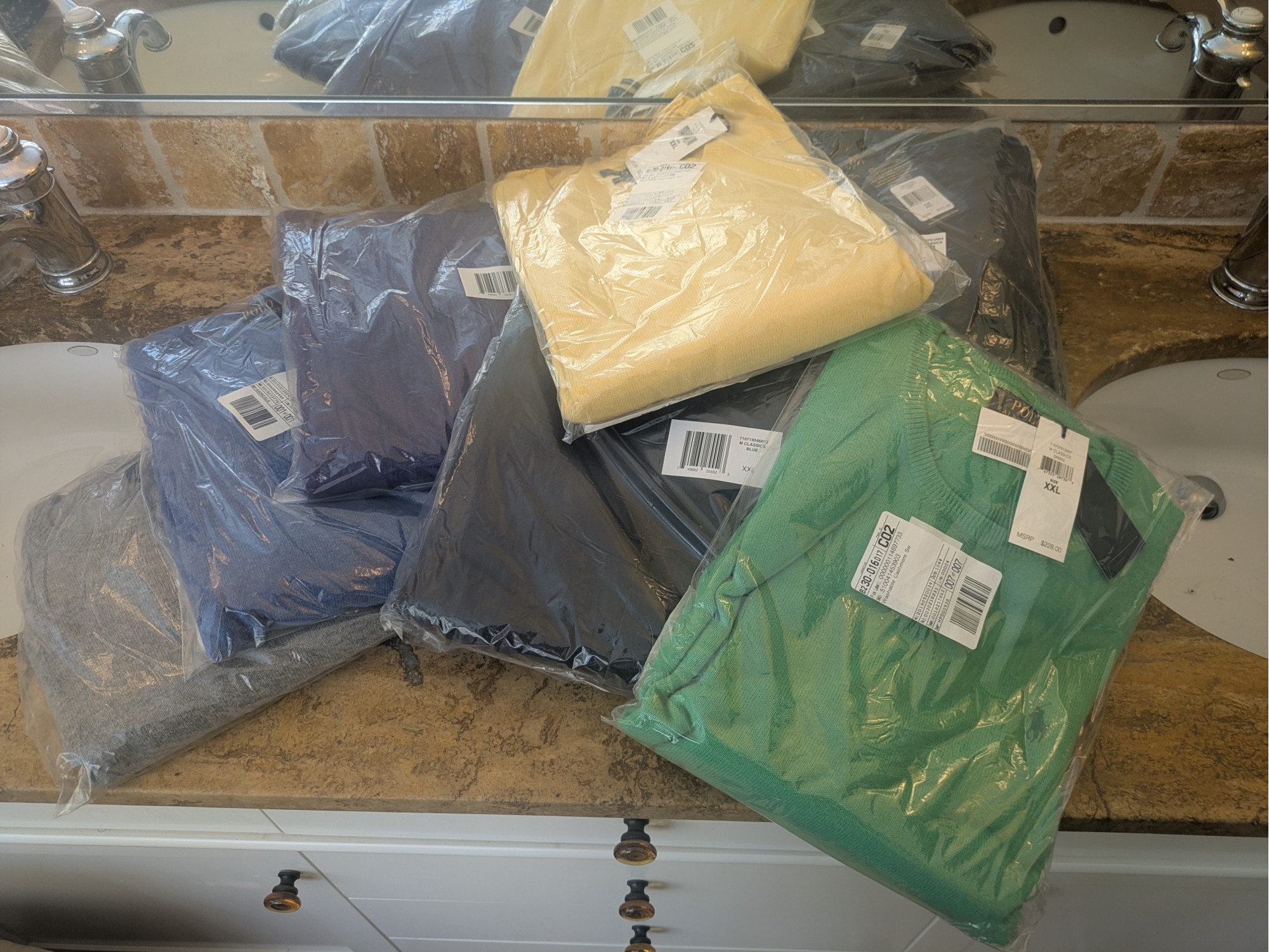 Ralph Lauren, Saks Fifth Avenue, Neiman Marcus, some cashmere. Nearly all new with tags.