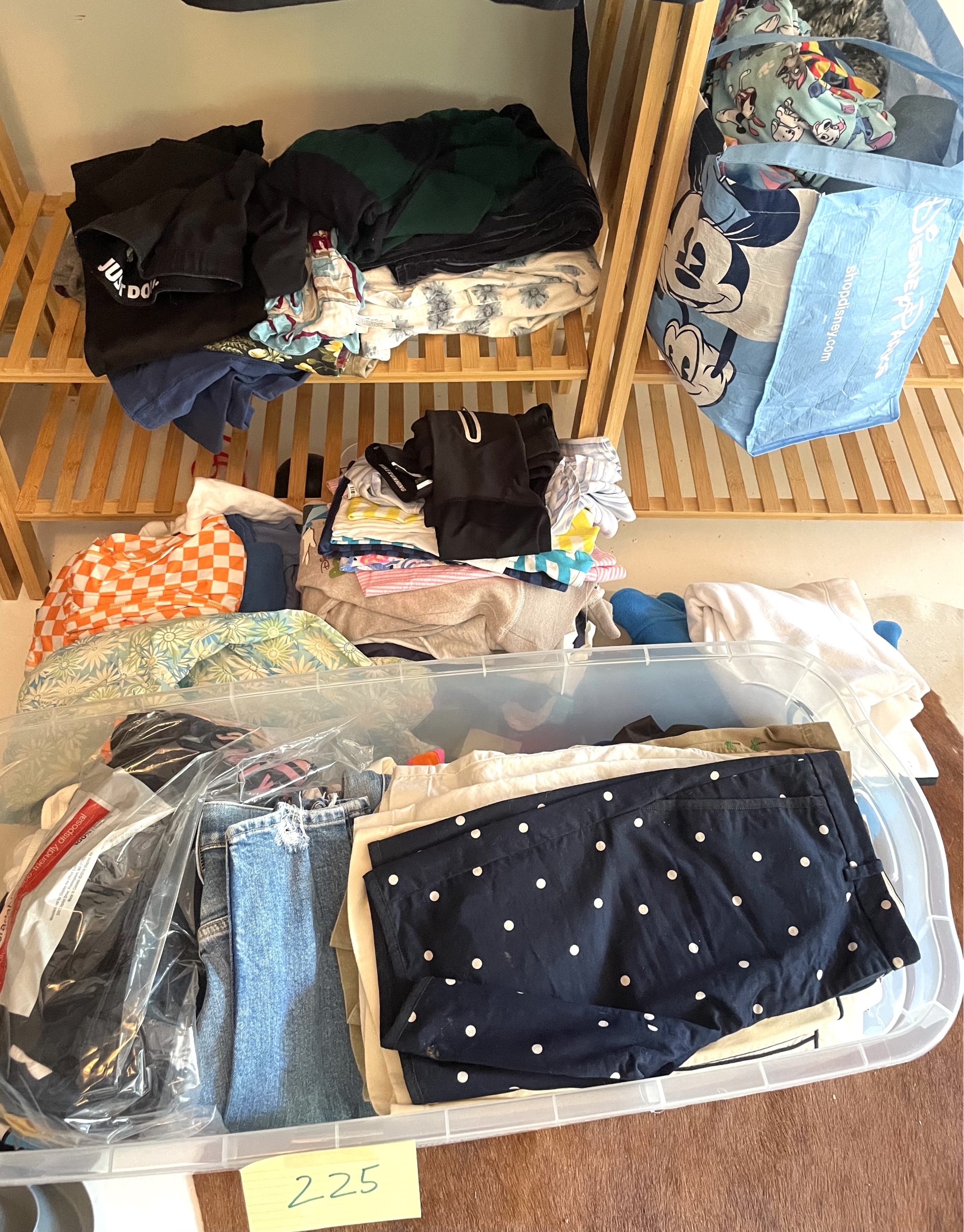 Including shorts, t-shirts, sweaters, jeans. fleece etc.