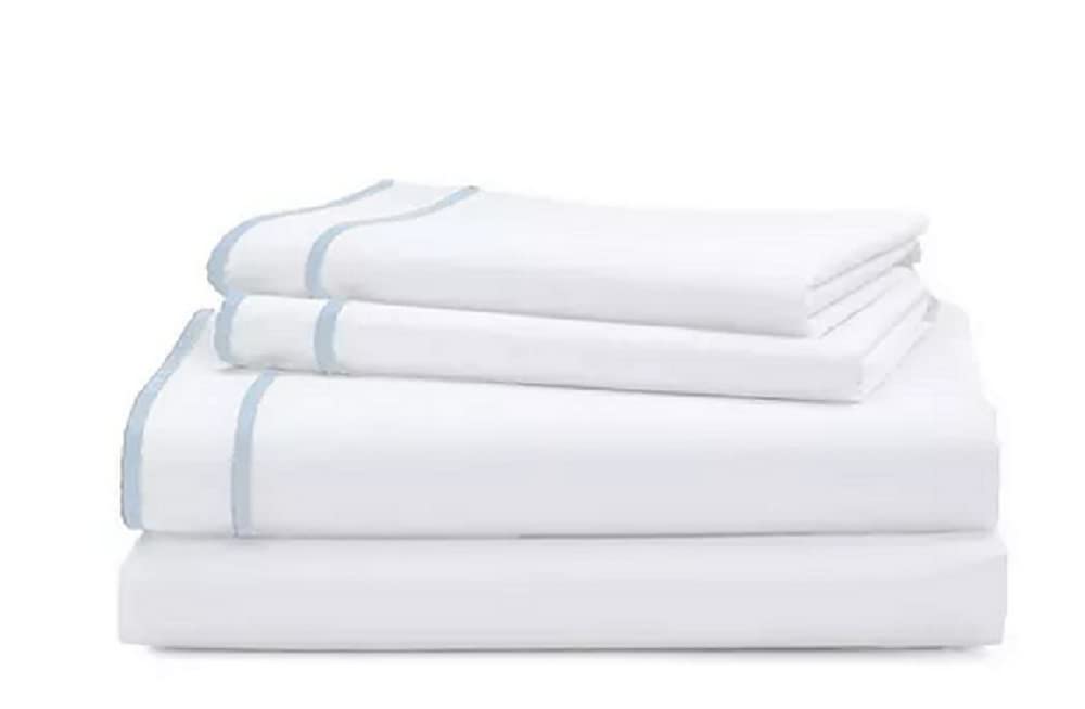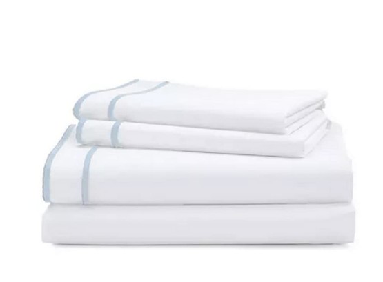 *Lauren Ralph Lauren Spencer 300 Thread Count King Sateen Sheet Set White Cornflower Blue