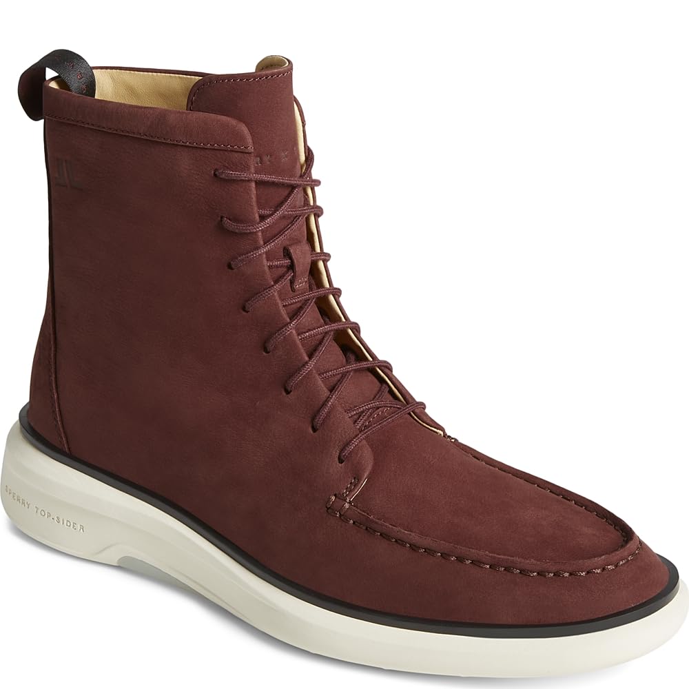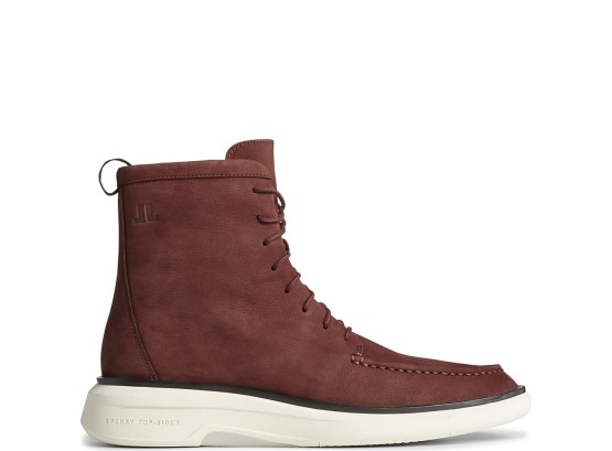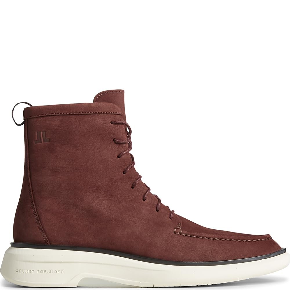 Luxurious, tumbled nubuck uppers in handsewn construction 7-Eye lace-up boot with choice of 2 waxed cotton laces, SPERRY x LEGEND logo heel webbing pull tab Fully-lined with supple lambskin PLUSHWAVE midsole/outsole for all-day lightweight comfort