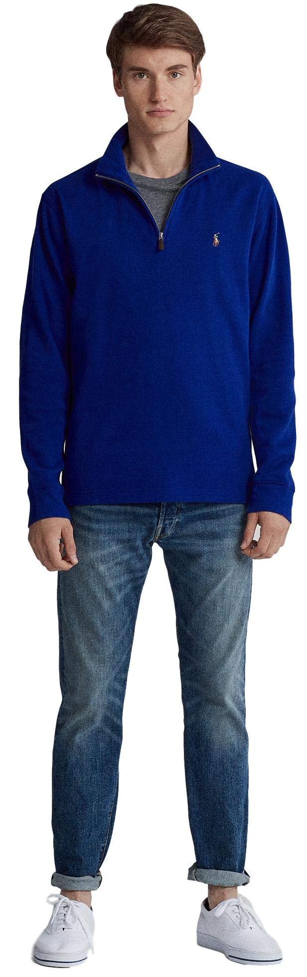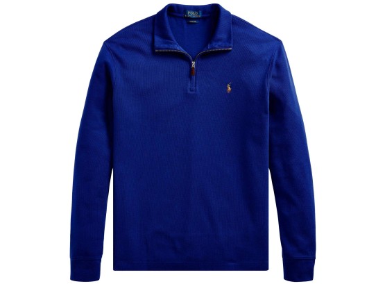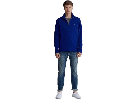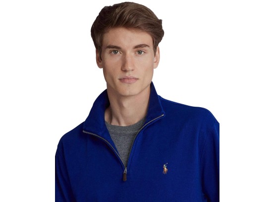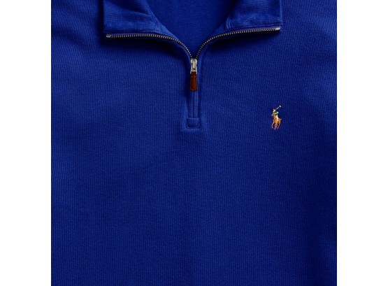 POLO RALPH LAUREN Mens Half Zip French Rib Cotton Sweater (XXL, BlueSigPony)