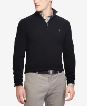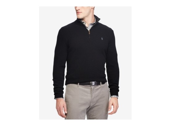 Rely on the Polo Ralph Lauren Wool-Cashmere Sweater for an effortless layering over shirts or under coats for a refined finish. The pullover sweater is crafted from a superbly soft wool-cashmere knit with a ribbed trim at the mock collar, long sleeves, and straight hemline. Quarter-length zip placket at the front. Signature pony player embroidery at the chest. 90% wool, 10% cashmere. Hand wash, dry flat. Imported. Measurements: Length: 28 in Chest Measurement: 44 in Sleeve Length: 37 in Product measurements were taken using size MD. Please note that measurements may vary by size.