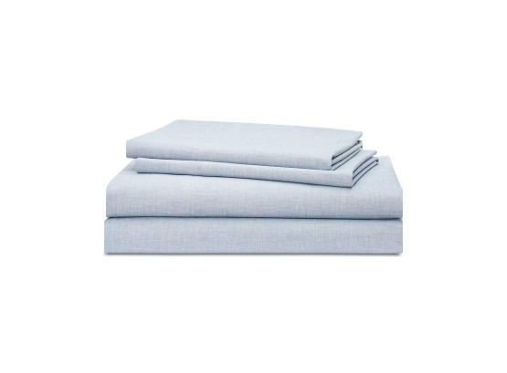 Ralph Lauren 4 Piece Queen Size Sheet Set Graydon Melange Cotton Chambray Blue