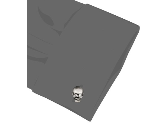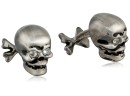 Antiqued sterling silver skull cufflinks with sapphire eyes and crossbones backings Made in United States. Retail $595.00