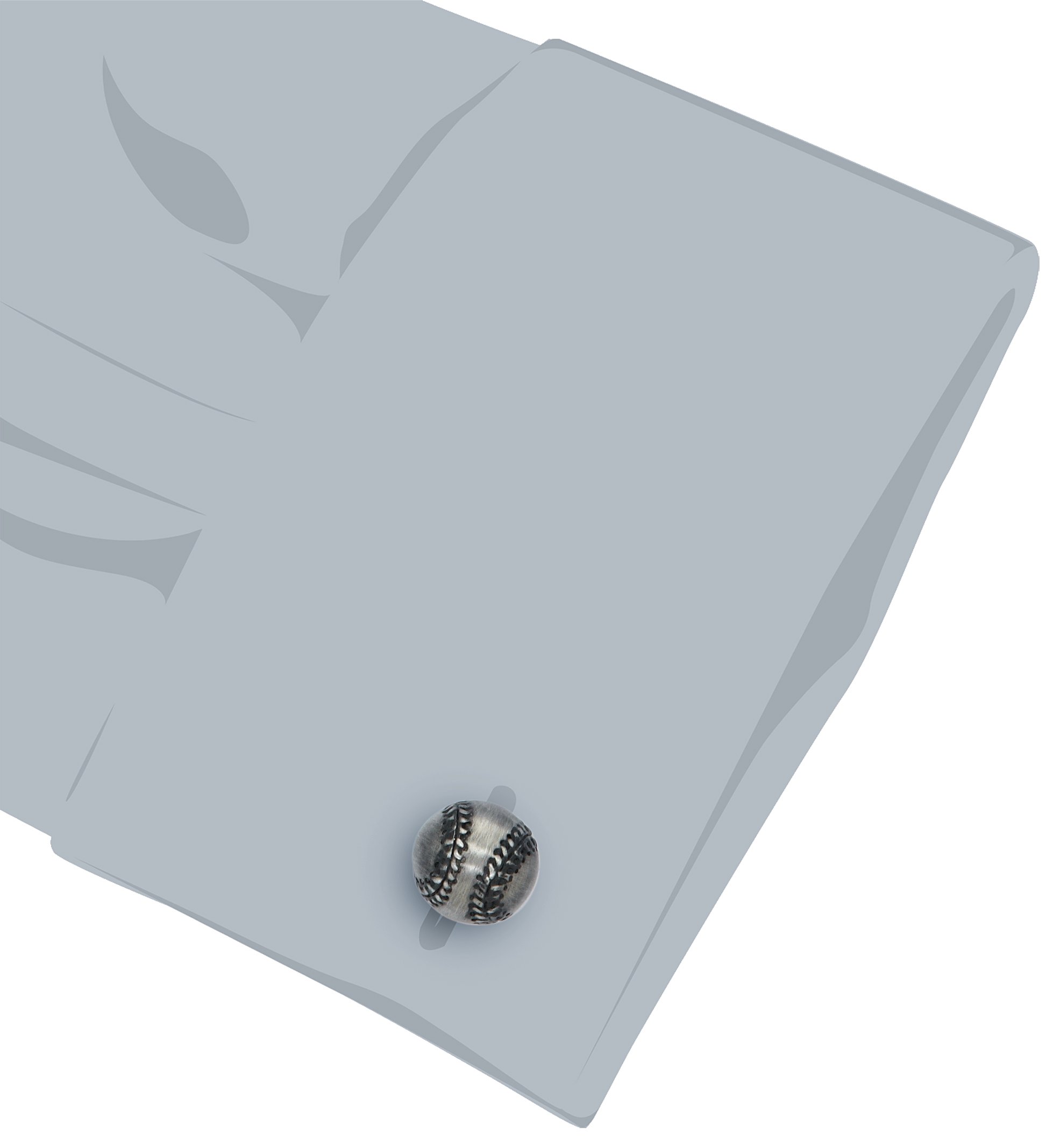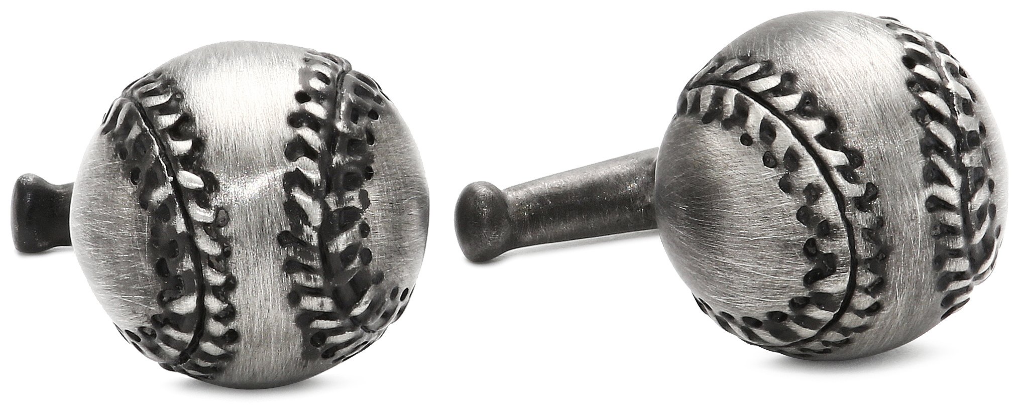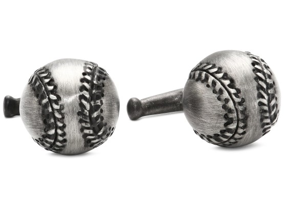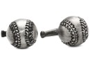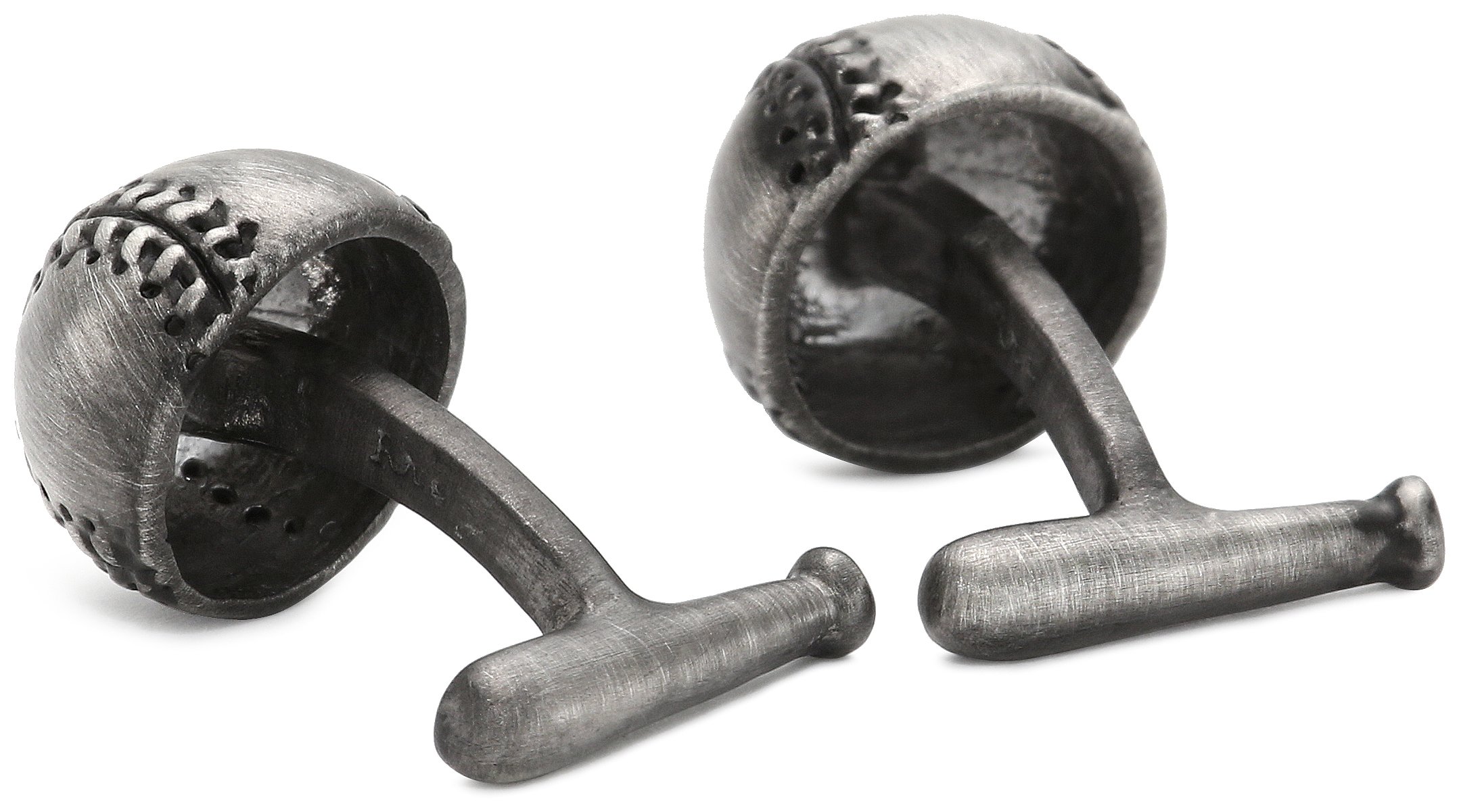 Antiqued cufflinks featuring half-baseball face and fixed bat backing Domestic N