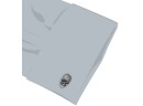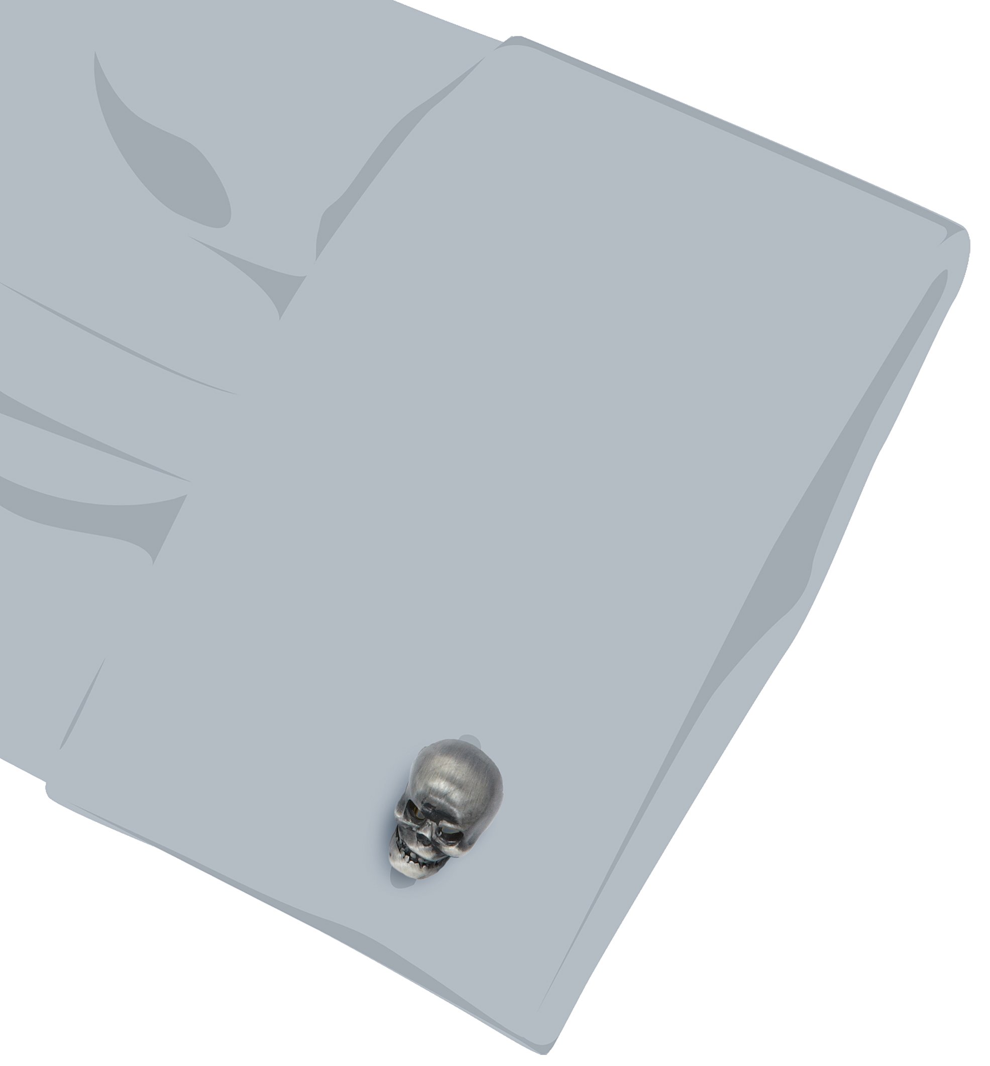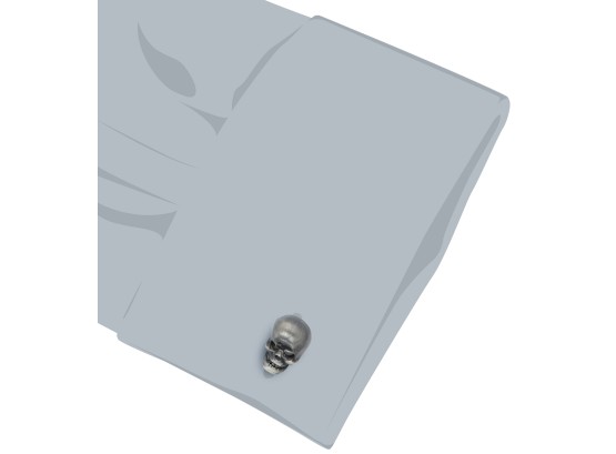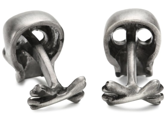 Brushed sterling silver cuff links featuring skull fronts and crossbones backings Domestic