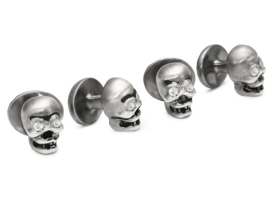 Items that are handmade and use natural stones, may vary in size, shape and color Skull studs set with white sapphire (brushed, black rhodium plated, antiqued) Made in United States