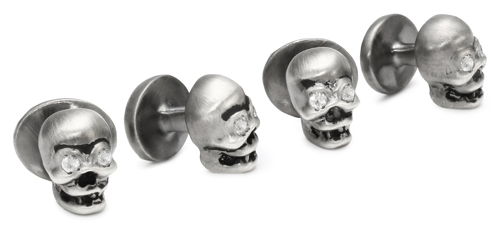 Items that are handmade and use natural stones, may vary in size, shape and color Skull studs set with white sapphire (brushed, black rhodium plated, antiqued) Made in United States