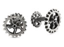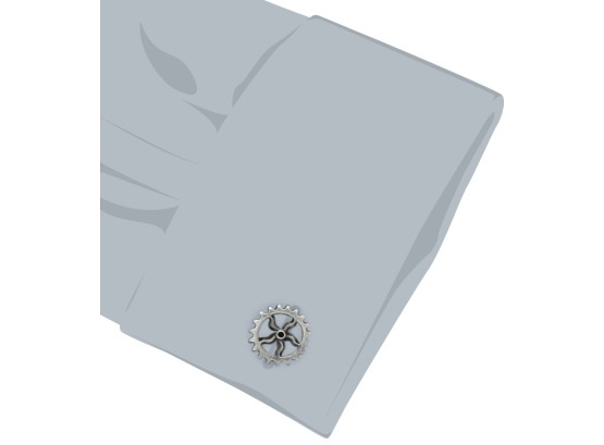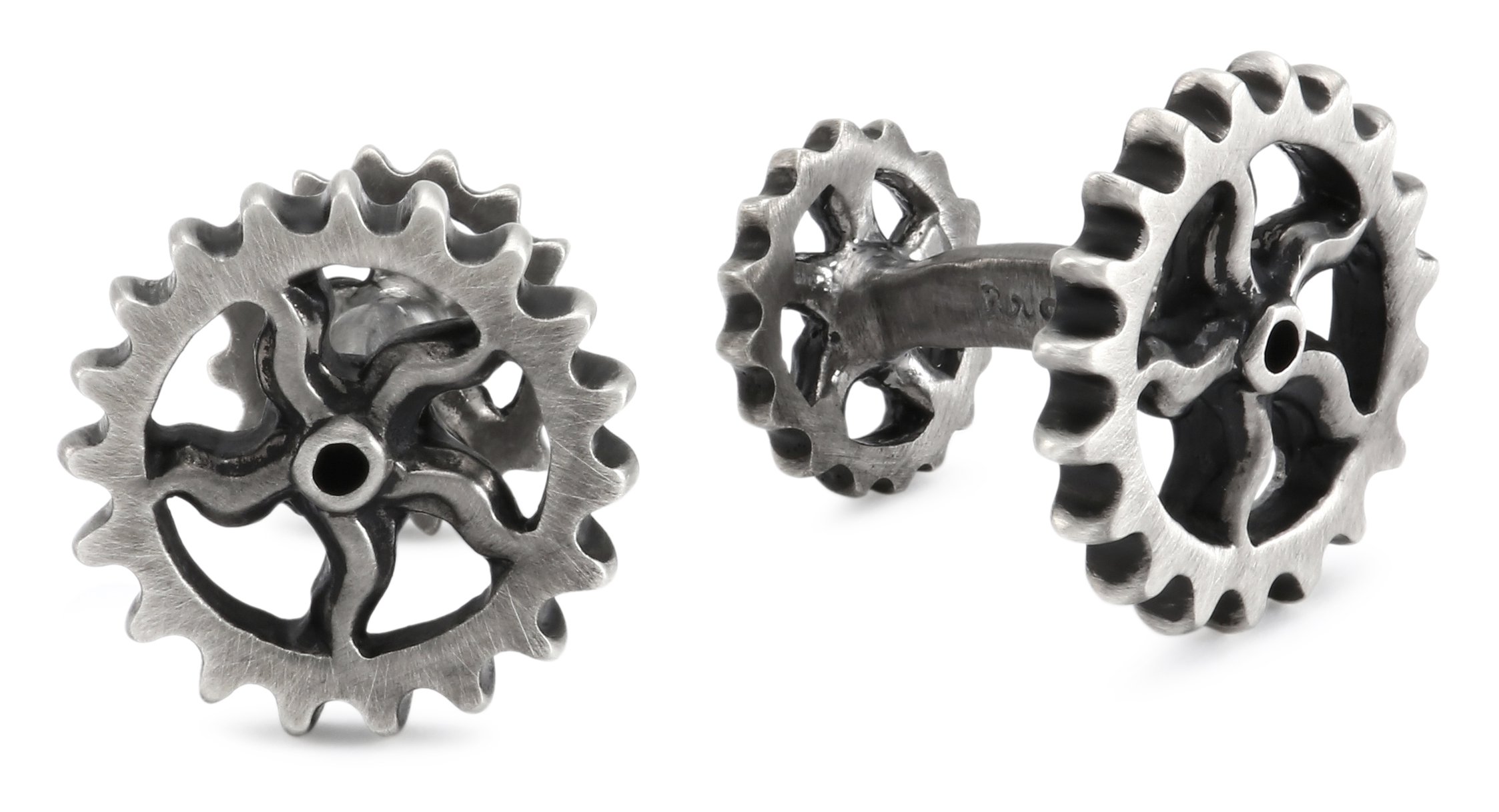 Fixed-backing cuff links featuring brushed sterling silver cogs at each side Made in United States