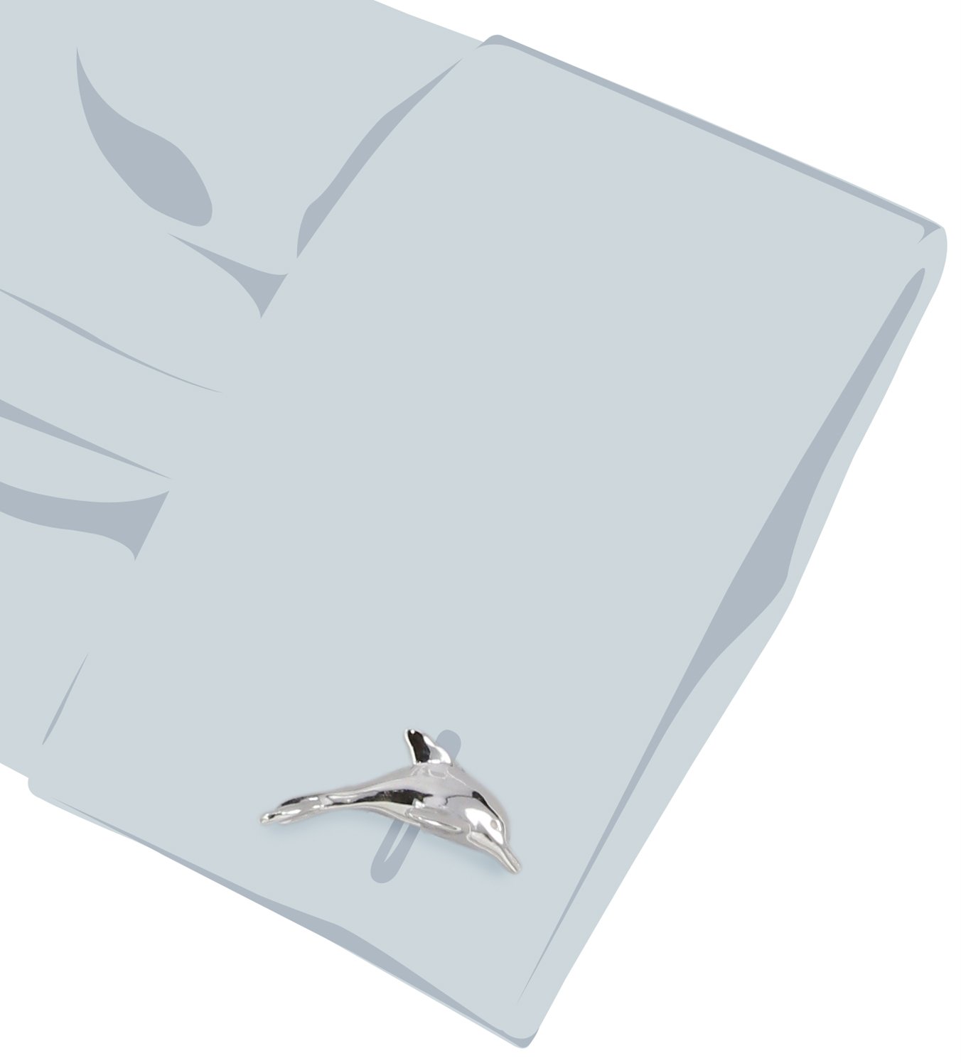 Polished sterling silver cuff links each featuring leaping dolphin at front and textured wave design on backing Made in United States