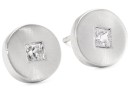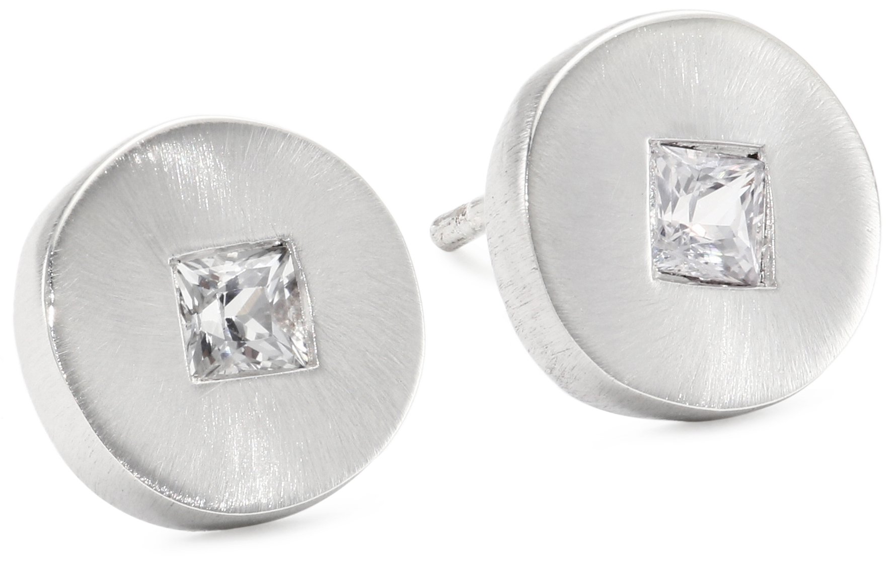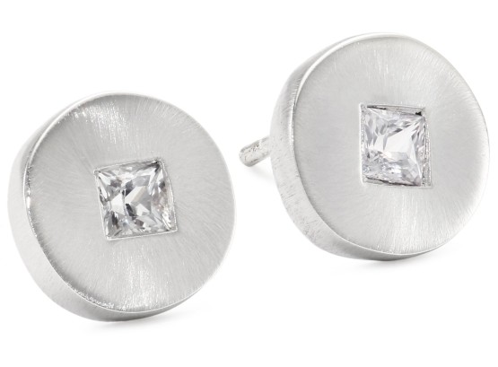 Sterling Silver brushed Disc set with Sapphires Studs Due to the natural elements of sapphire, the stone may vary in color, size or shape. Disc & Square, a classic and timeless shape Made in United States