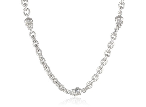 Items that are handmade may vary in size, shape and color Sterling silver medium cable link necklace with 7 small skulls Made in United States