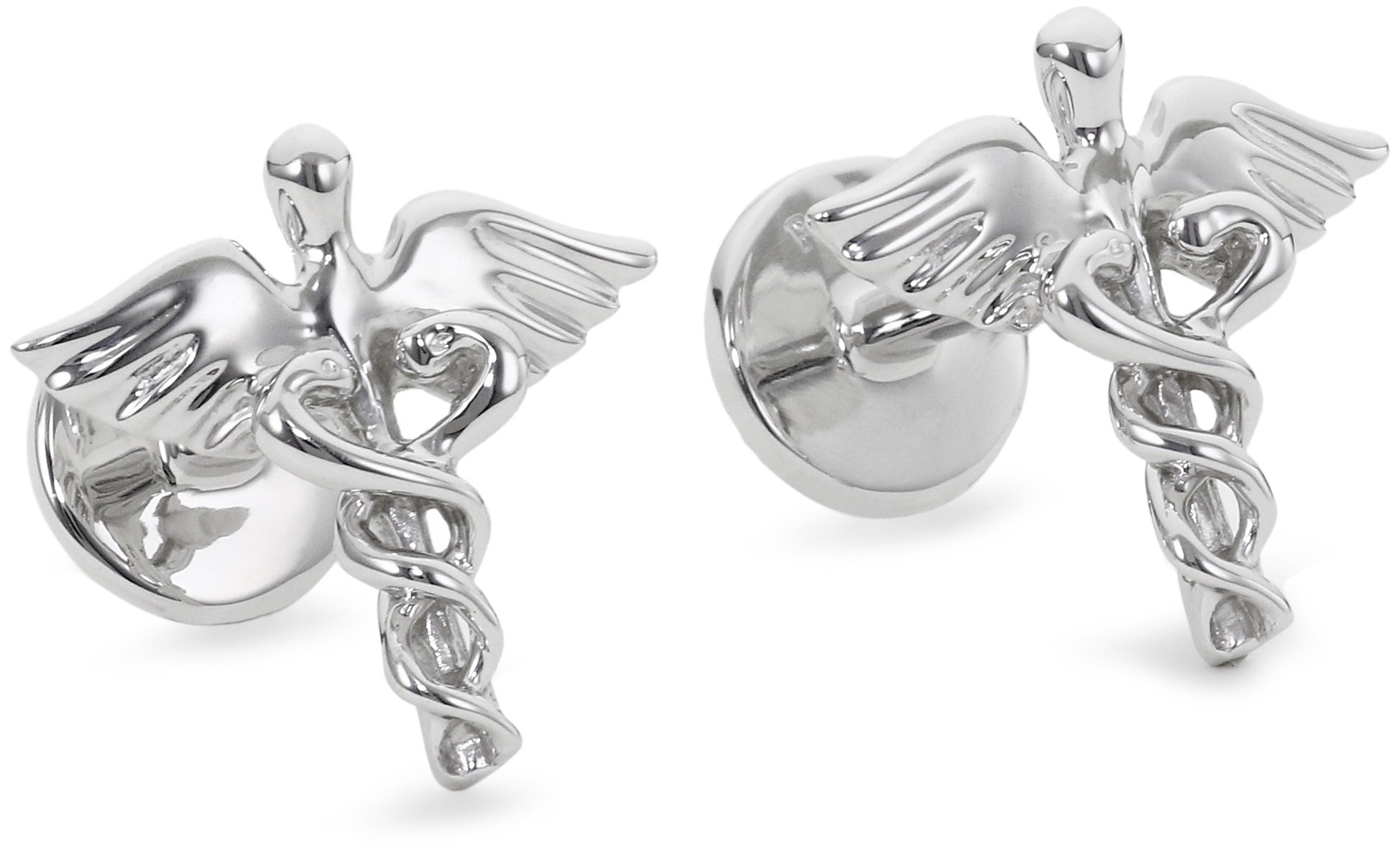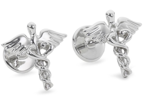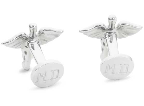 Sterling silver cufflinks with each featuring caduceus on side and "MD" plaque on the other Made in the USA
