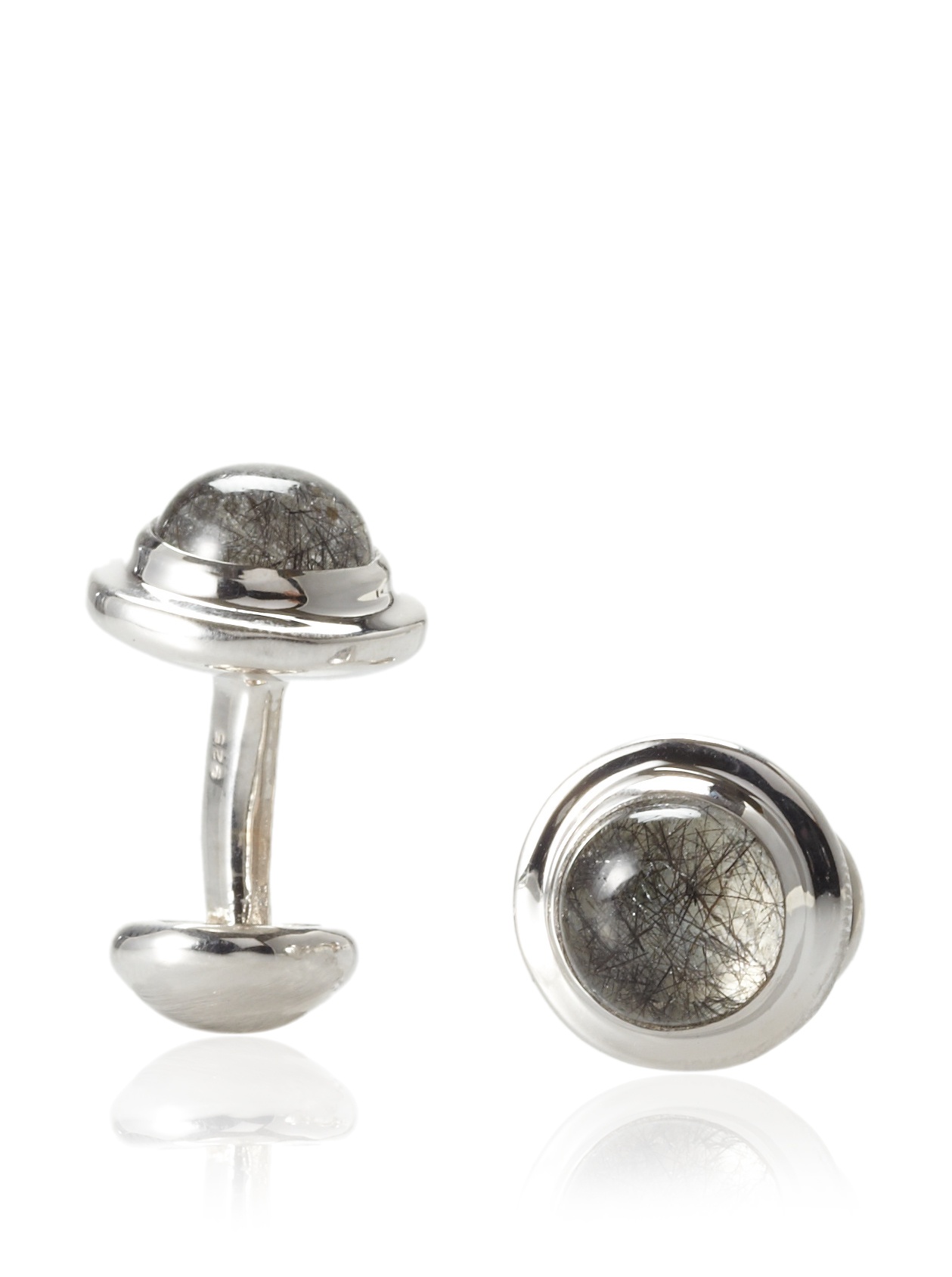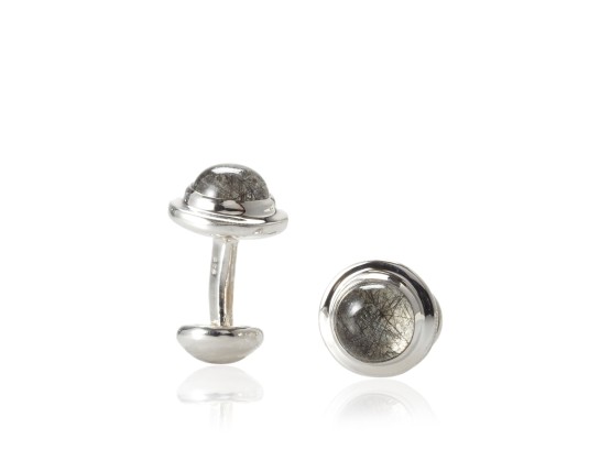 Rotenier Sterling Silver Rutilated Quartz Globe Cufflinks