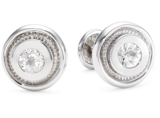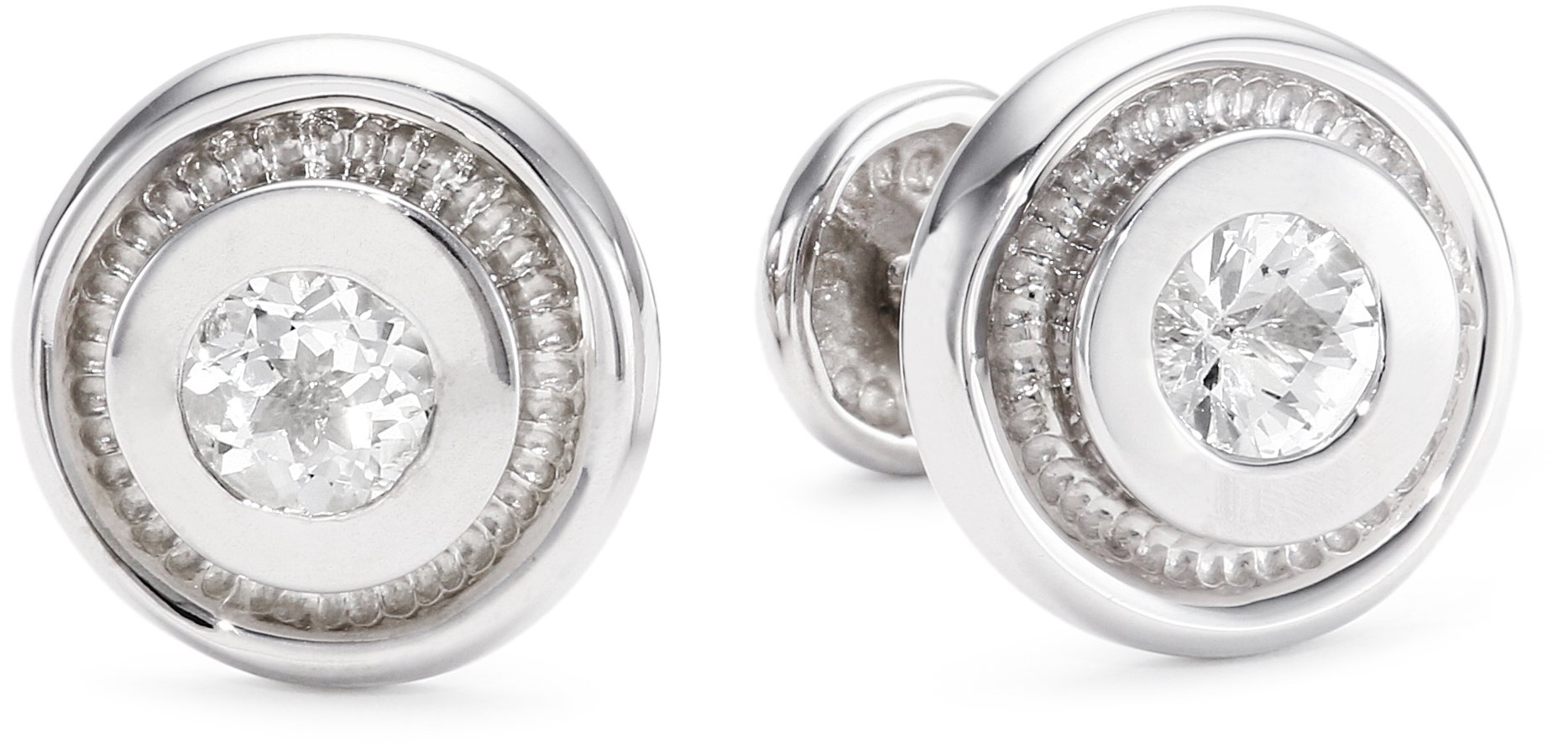 Sterling Silver Bearing set with White Topaz Cufflinks Due to the natural elements of white topaz, the stone may vary in color, size or shape. Shaped like a bearing Made in United States
