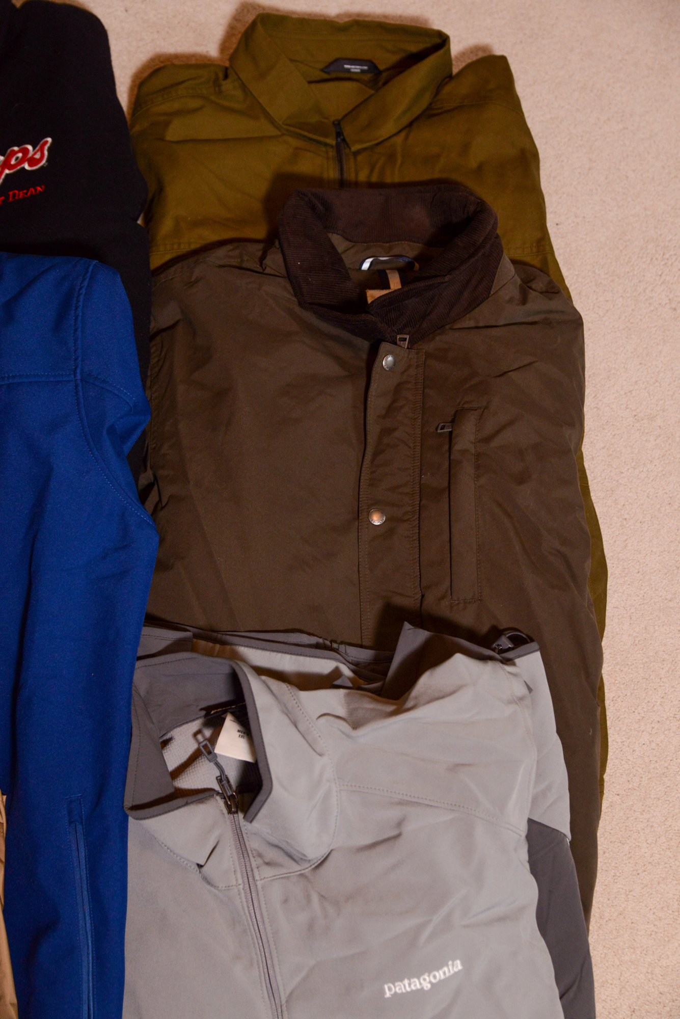 Including Patagonia, Merril, Nike, Arcteryx, Cole Haan, some with Grateful Dead emblems. Sizes XL and 2XL.