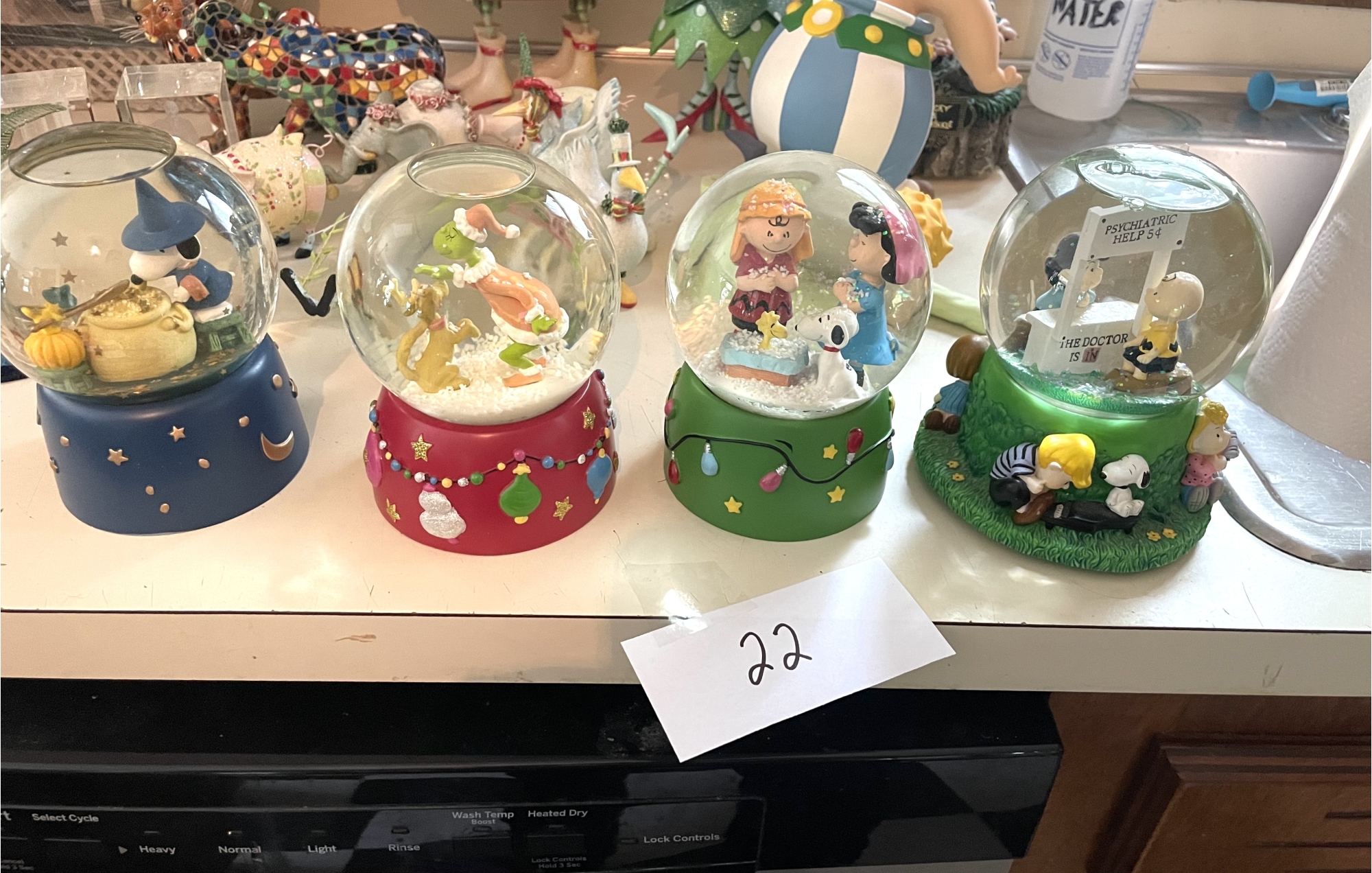 Including Peanuts and the Grinch. 1 with music. Height 6 inches.