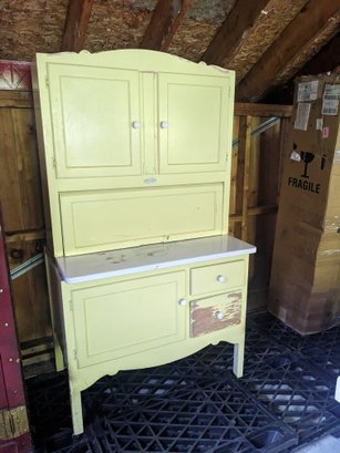 Height 64 inches, width 36 inches, depth 23 inches. Paint loss, door hinges broken.