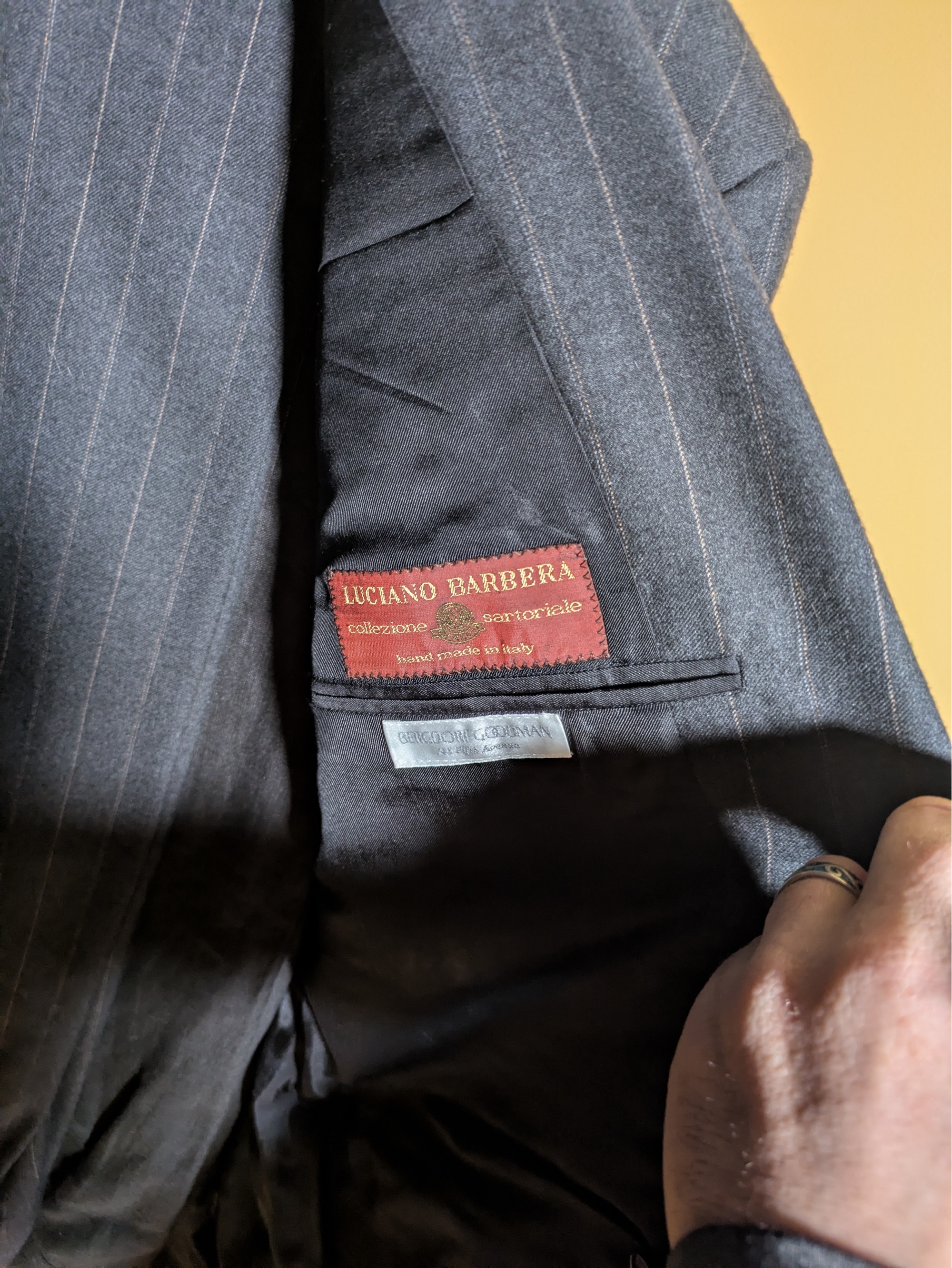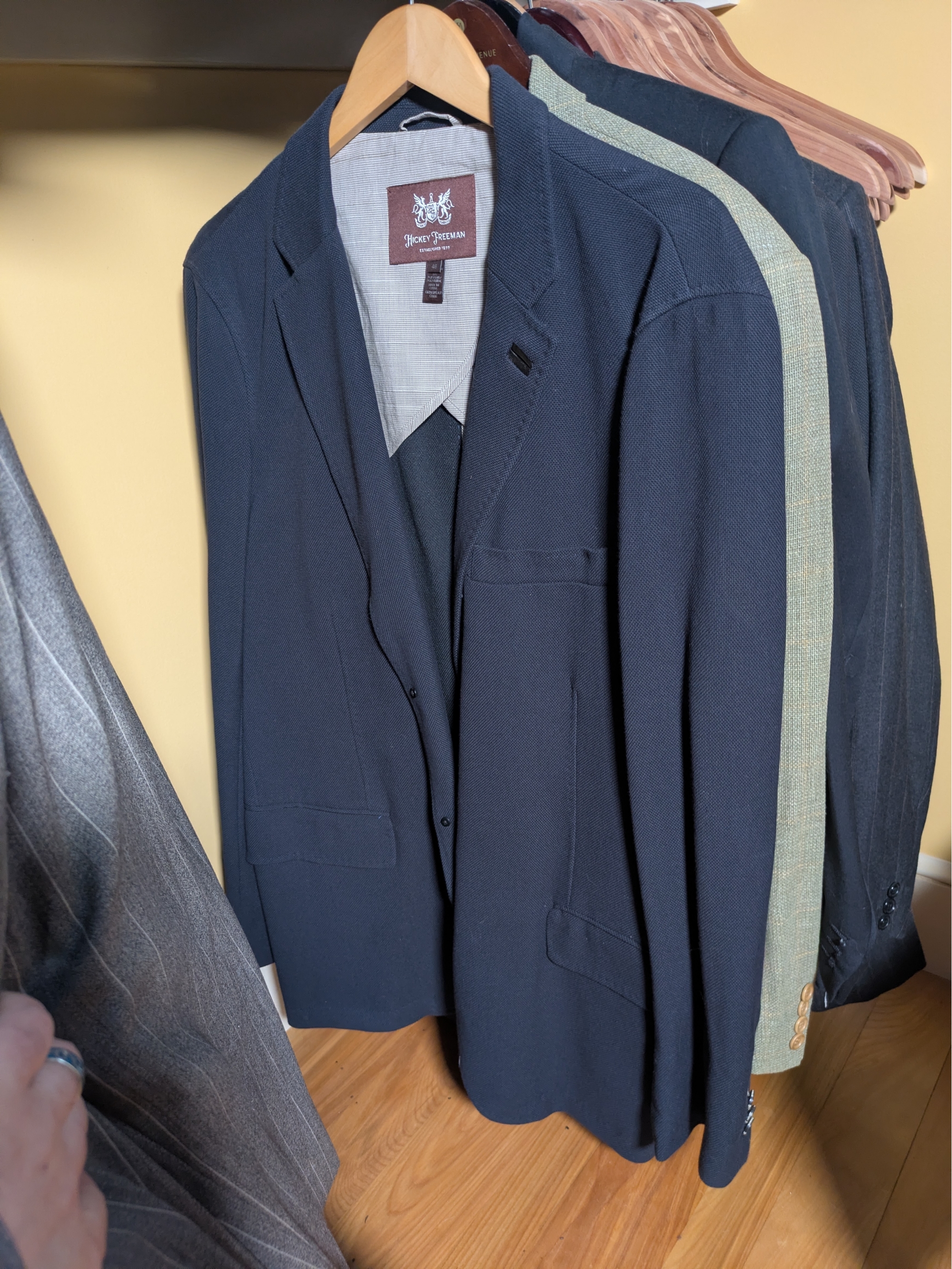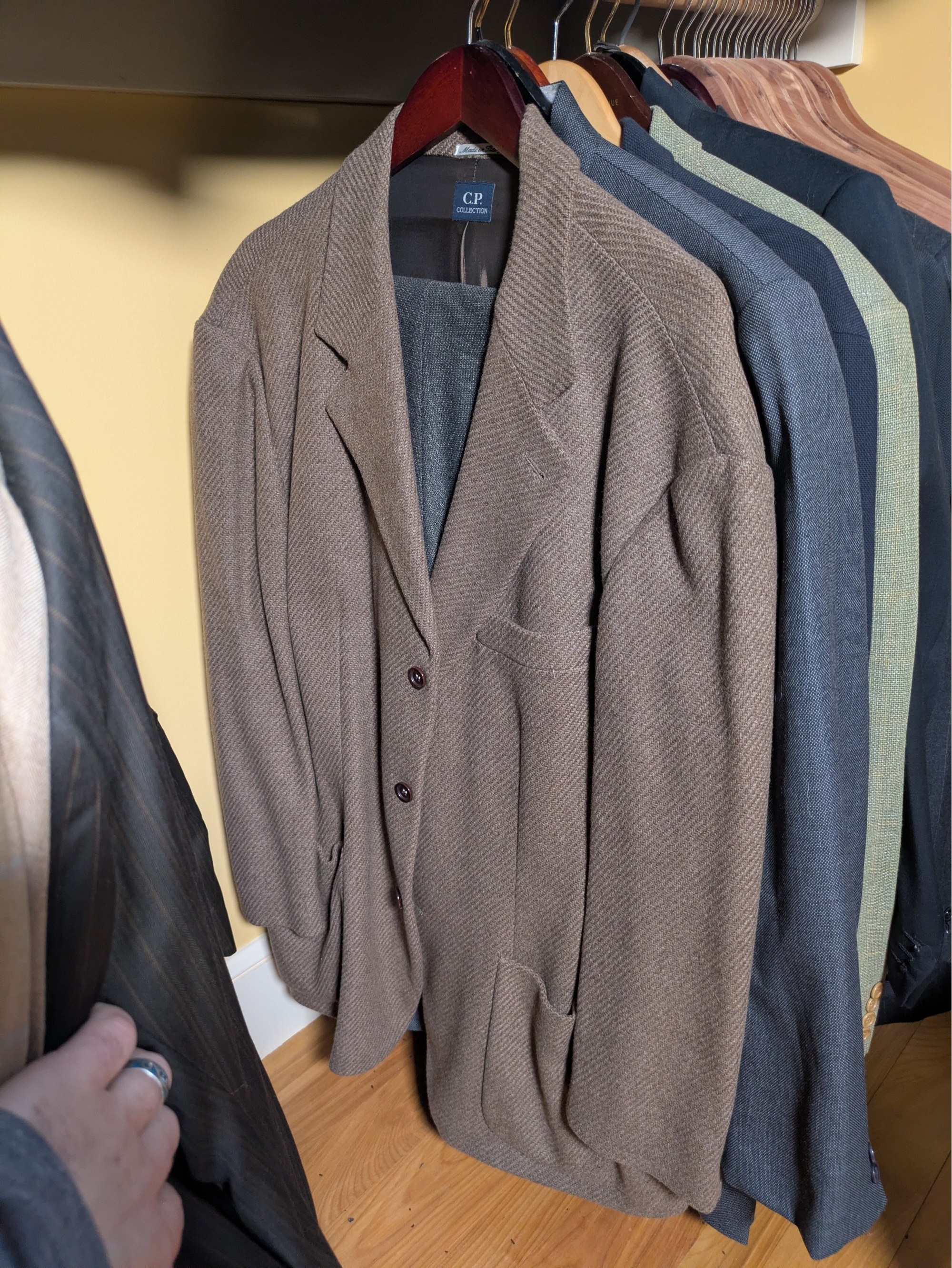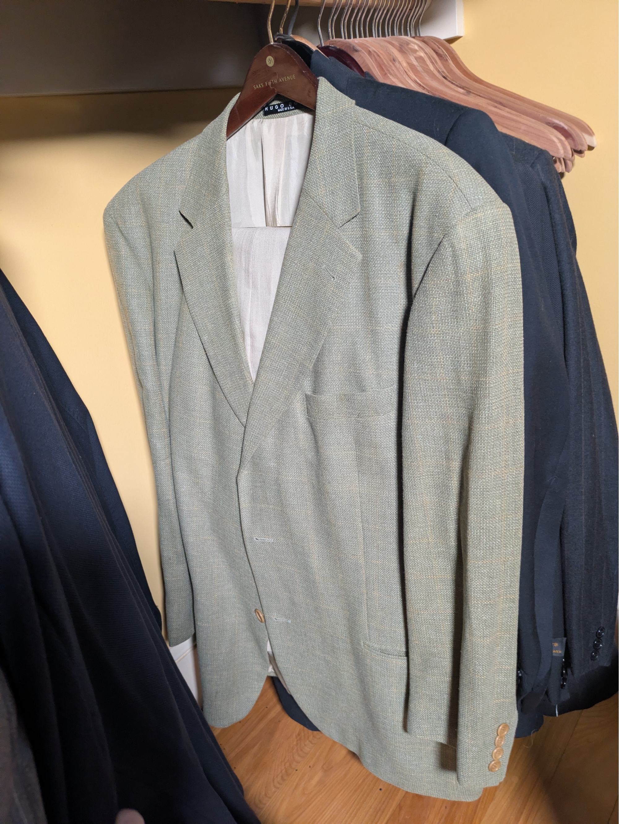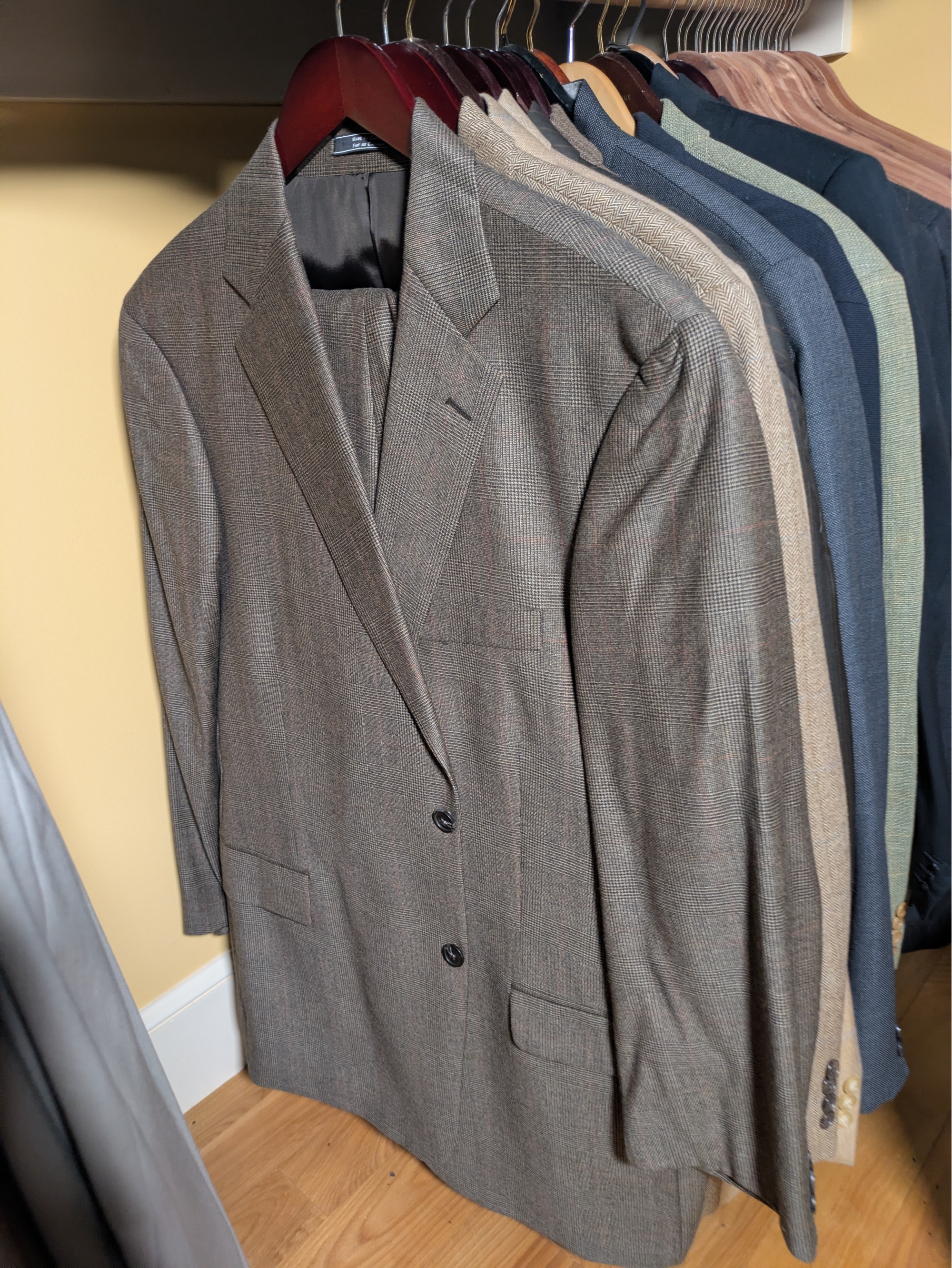 Hugo Boss, Arnold Brant, and others, some including pants.