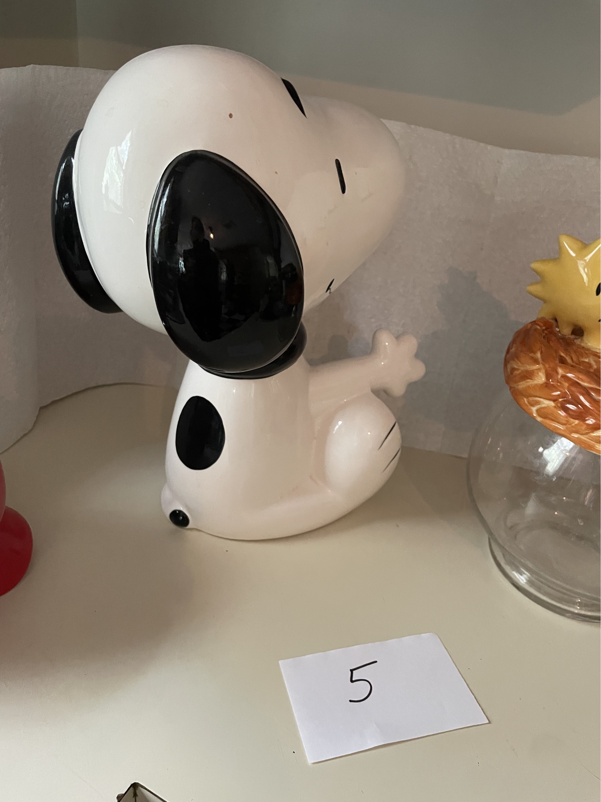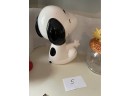 With other red ceramic footed bowl. Snoopy height 12.5 inches. Good condition.
