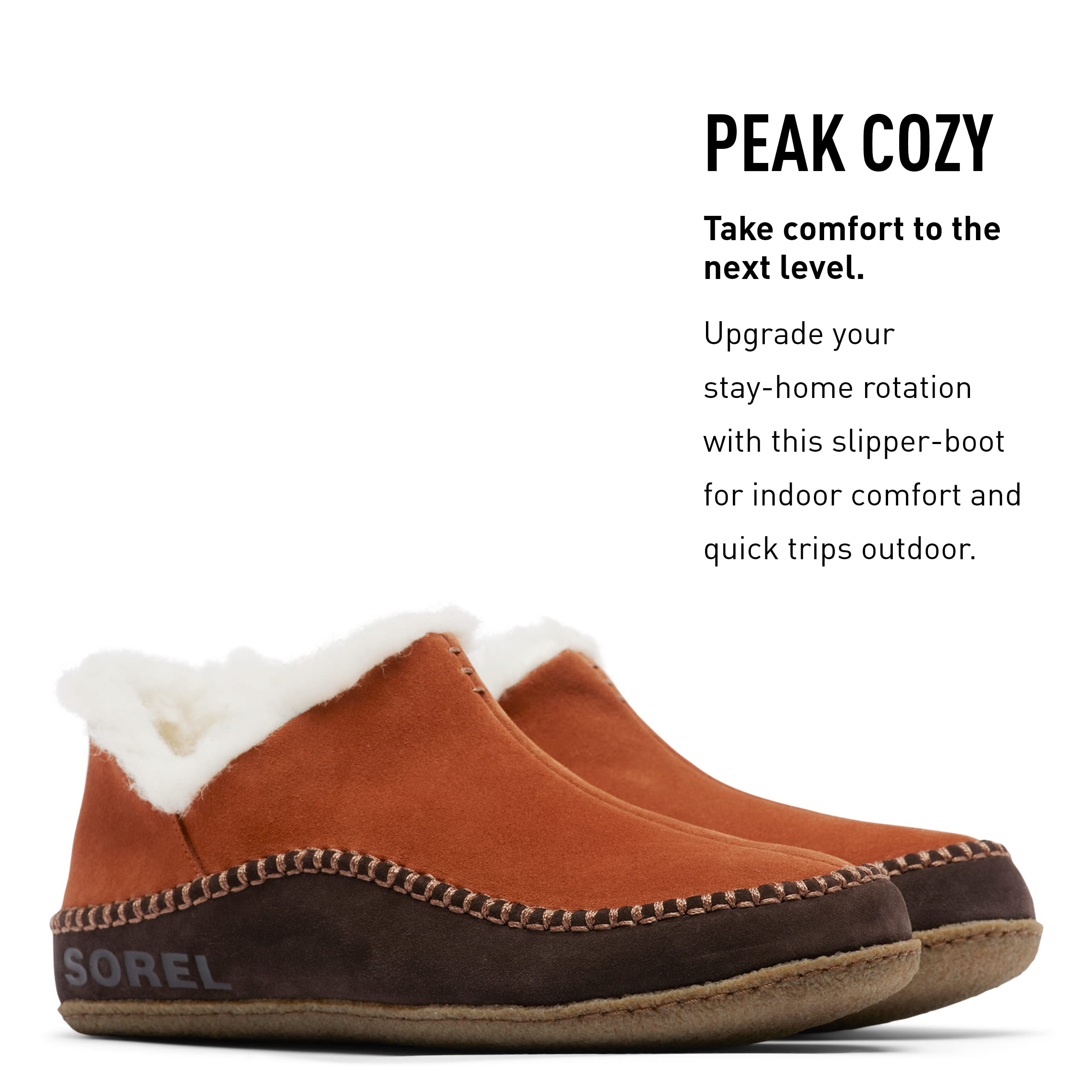 SOREL Slippers for Men: The modern design of these cozy men's indoor/outdoor slippers keep your feet warm whether you're sliding out of bed or stepping out to walk the dog House Slippers for Men: Suede leather slipper with wool and polyester blend lining for toasty warmth on chilly days Home Slippers for Men: Comfortable slippers with removable molded EVA footbed will be your go-to slippers for coziness Cozy Foot Support: A 1/4" heel and platform height 1/2" with a grippy rubber outsole makes these slippers suitable for inside and outside Snug & Homey Comfort: Relax with this simple and warm slippers made for all day wear, with a modern design that looks and acts the part