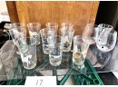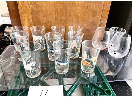 With 3 other glasses. Juice glass height 4.5 inches. Good condition.