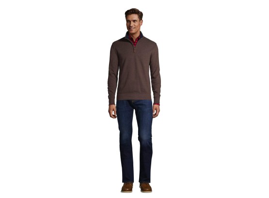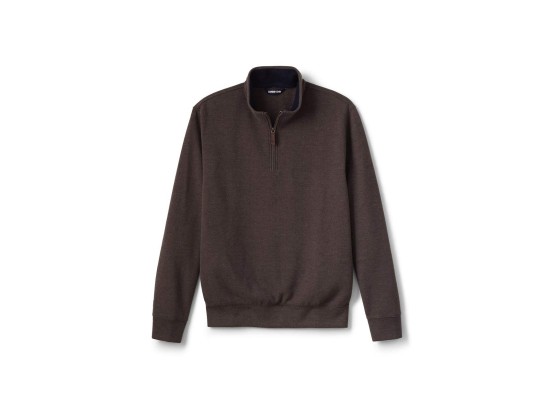 Lands' End Mens Bedford Rib Quarter Zip Heather Kona Brown Heather Regular XX-Large