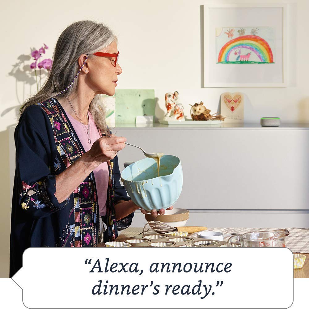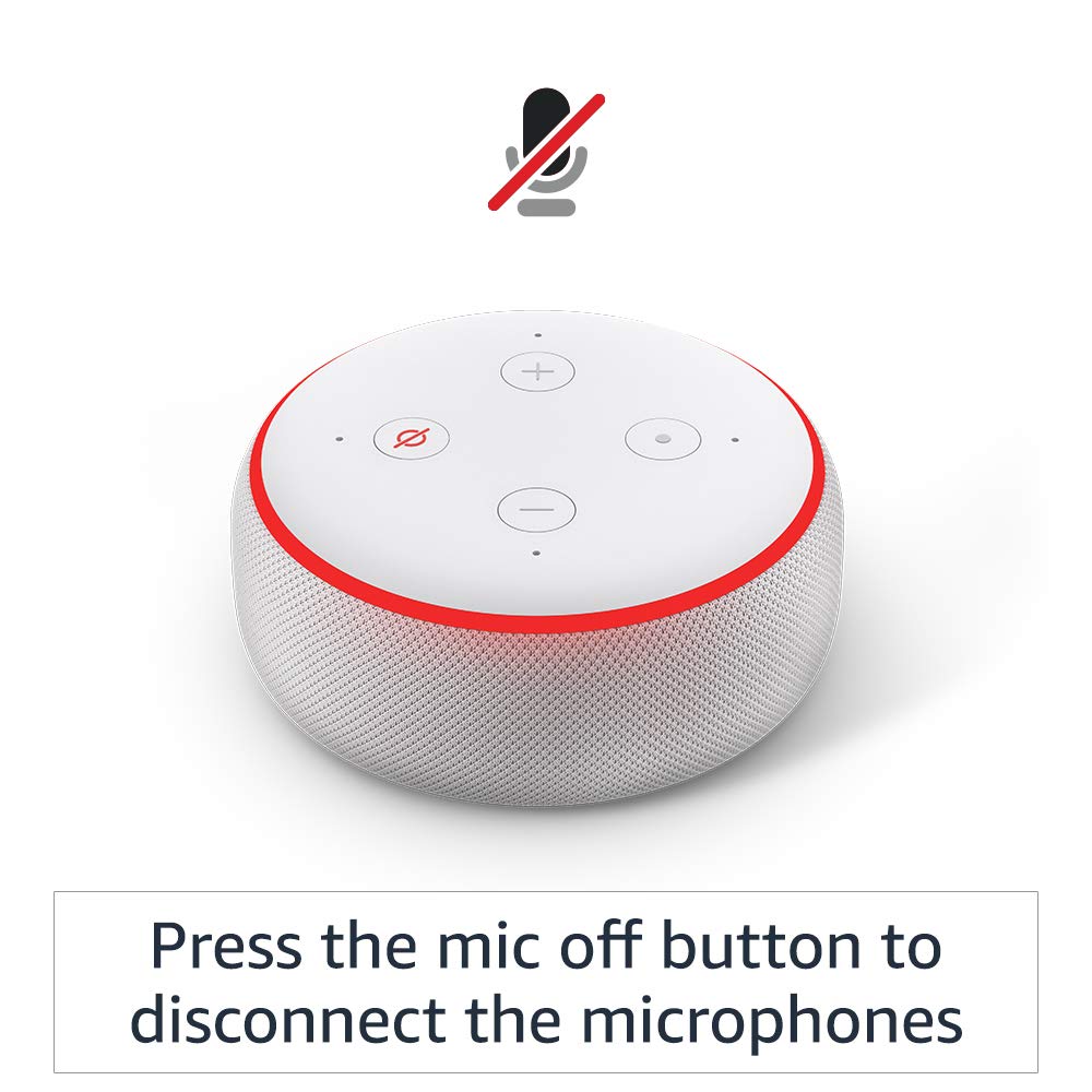 MEET ECHO DOT - Our most compact smart speaker that fits perfectly into small spaces. RICH AND LOUD SOUND - Better speaker quality than Echo Dot Gen 2 for richer and louder sound. Pair with a second Echo Dot for stereo sound. ALEXA HELPS YOU DO MORE WITH PRIME - Listen to millions of songs with Amazon Music, use your voice to for 2-day shipping, listen to audiobooks on Audible, and much more. MAKE YOUR LIFE EASIER - Alexa can set timers, check the weather, read the news, adjust thermostats, answer questions, and more to help with daily tasks. DESIGNED TO PROTECT YOUR PRIVACY – Built with multiple layers of privacy controls including the ability to delete your recordings, mute your mic, and more in-app privacy controls. CONTROL MUSIC WITH A SIMPLE PHRASE - Echo Dot allows you to stream songs from Amazon Music, Apple Music, Spotify, SiriusXM, and others, as well as via Bluetooth. Voice control with Alexa makes it easy to skip to the next song, adjust the volume, and pause without getting up. CONNECT WITH OTHERS HANDS-FREE - Call friends and family who have the Alexa app or an Echo device. Instantly drop in on other rooms or announce to the whole house that dinner's ready. ALEXA HAS SKILLS - With tens of thousands of skills and counting, Alexa is always getting smarter and adding new skills like tracking fitness, playing games, and more.