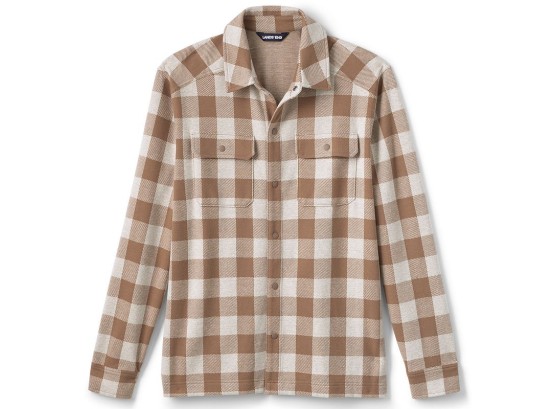 Layer up for cool temperatures with this brushed jacquard shirt jacket from Lands' End. Layer up for cool temperatures with this brushed jacquard shirt jacket from Lands' End. Plaid pattern 1 button flap pocket Stretch fabric allows comfortable movement Long sleeves Snap frontFIT & SIZING Classic fitFABRIC & CARE Cotton, polyester, spandex Machine wash Imported Size: XXL. Color: Brown. Gender: male. Age Group: adult. Pattern: Buffalo Plaid. Material: Cotton Blend.