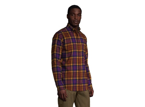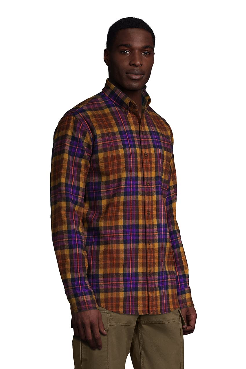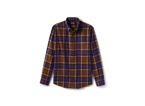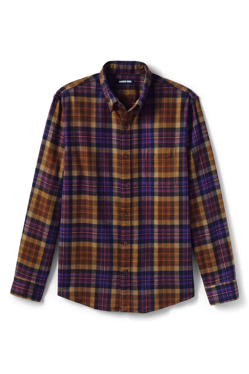 Lands' End Mens Traditional Fit Flagship Flannel Shirt Brown/Purple Plaid Regular XX-Large
