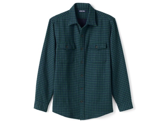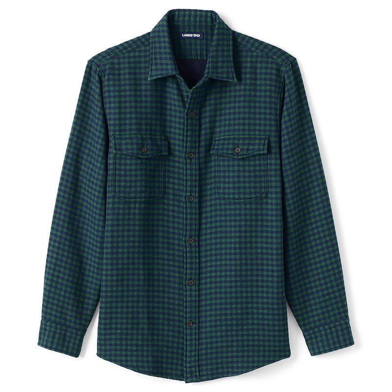 Gear up for cooler weather with this men's plaid fleece-lined overshirt shirt jacket. Watch now to learn more about our Big & Tall sizing. Flap-with-button pocket Ideal for layering Sturdy cotton fleece fabric with soft brushed lining Plaid pattern Button front Long sleevesFABRIC & CARE Cotton Machine wash Imported Size: XXL. Color: Green. Gender: male. Age Group: adult.