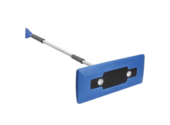 [BEST USE]: Clearing snow and ice from cars and trucks, day or night [NON-ABRASIVE]: 18 in. l x 7 in. non-abrasive foam head pushes heavy, wet snow off vehicles without damaging paint, trim, or glass [LED LIGHTS]: Four led lights emergency blinker function for nighttime illumination [ICE SCRAPER]: Built-in ice scraper quickly clears icy build-up on windshields [BRACKET HOLDER]: Secures pole for easy storage