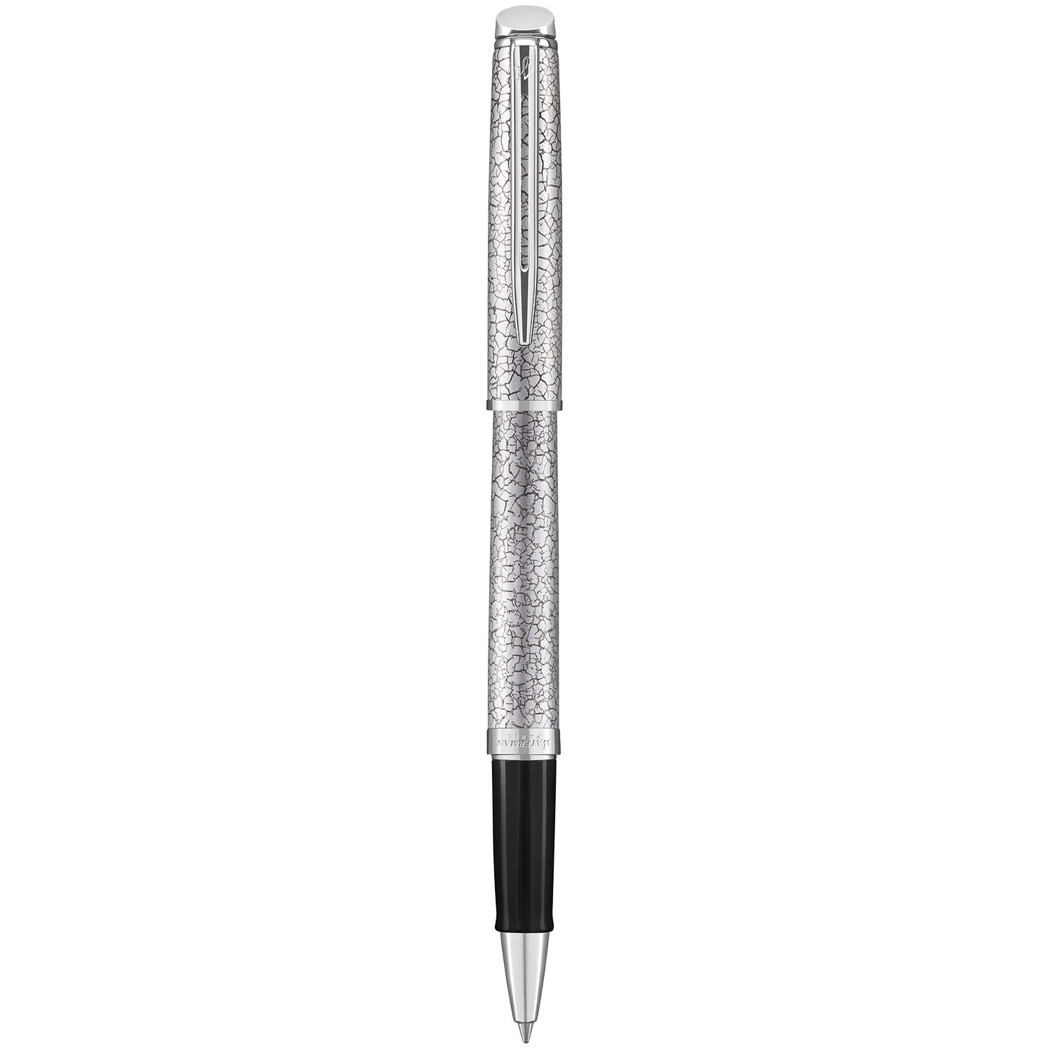 Elegantly slim design for a delicate lightness when writing and sophisticated silhouette An arresting, intricate pattern accented with palladium trim provides a fashionable Parisian look and feel Fine roller ball tip creates detailed, skip free lines with the richness, feel, and flow of liquid ink Meticulously crafted in France to elevate your signature style Presented in a Premium dark blue Water man gift box (ink is in the box beneath the pen)
