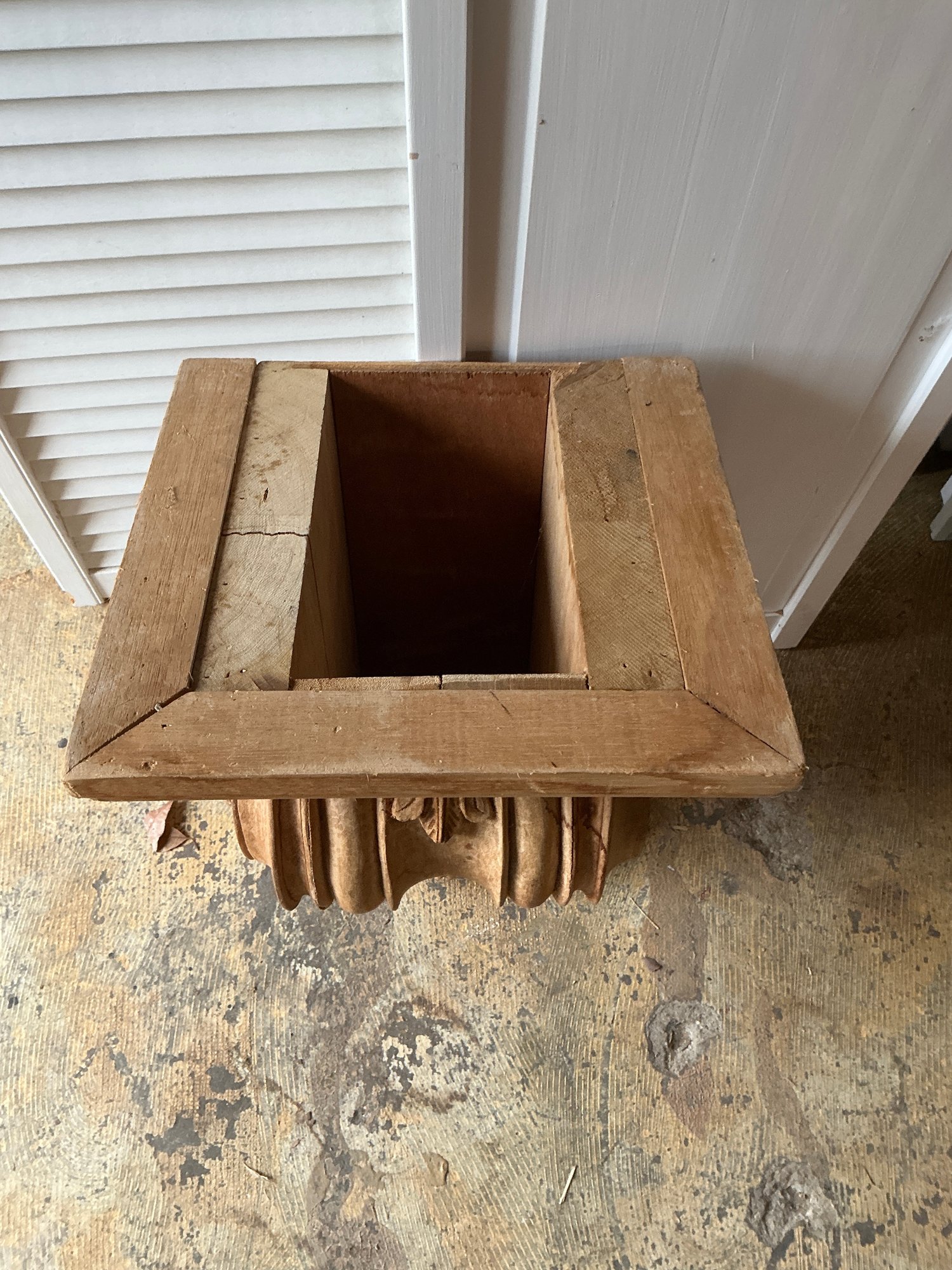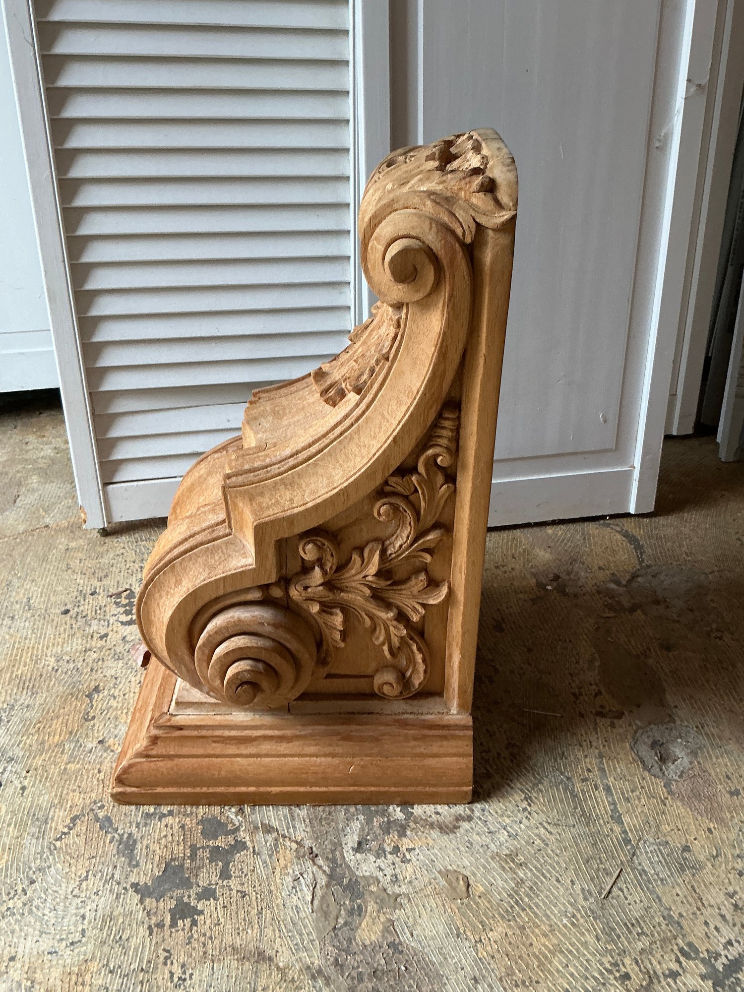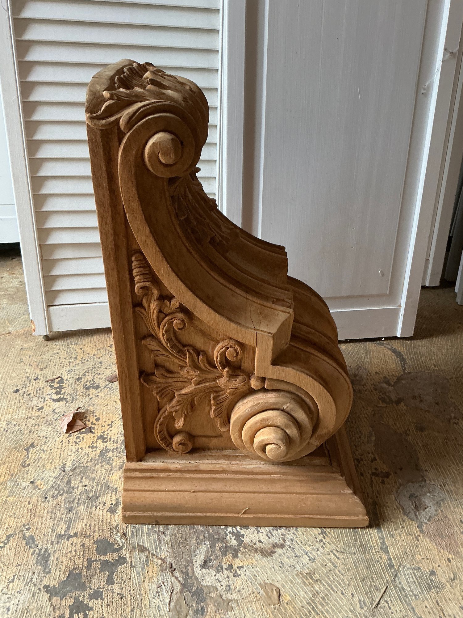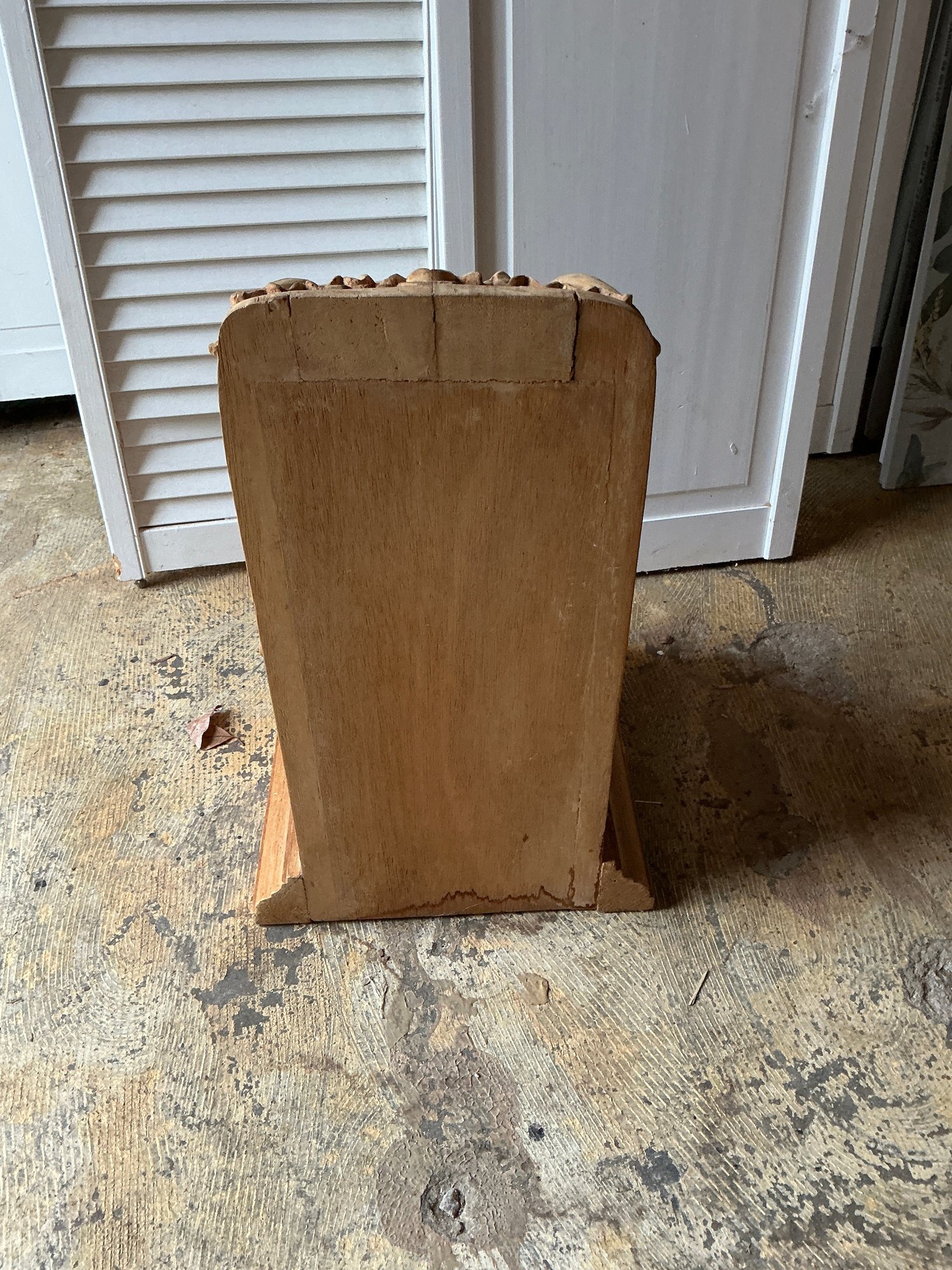 Antique carved wooden corbel. Item in good condition and measures 20” H x 12” D.