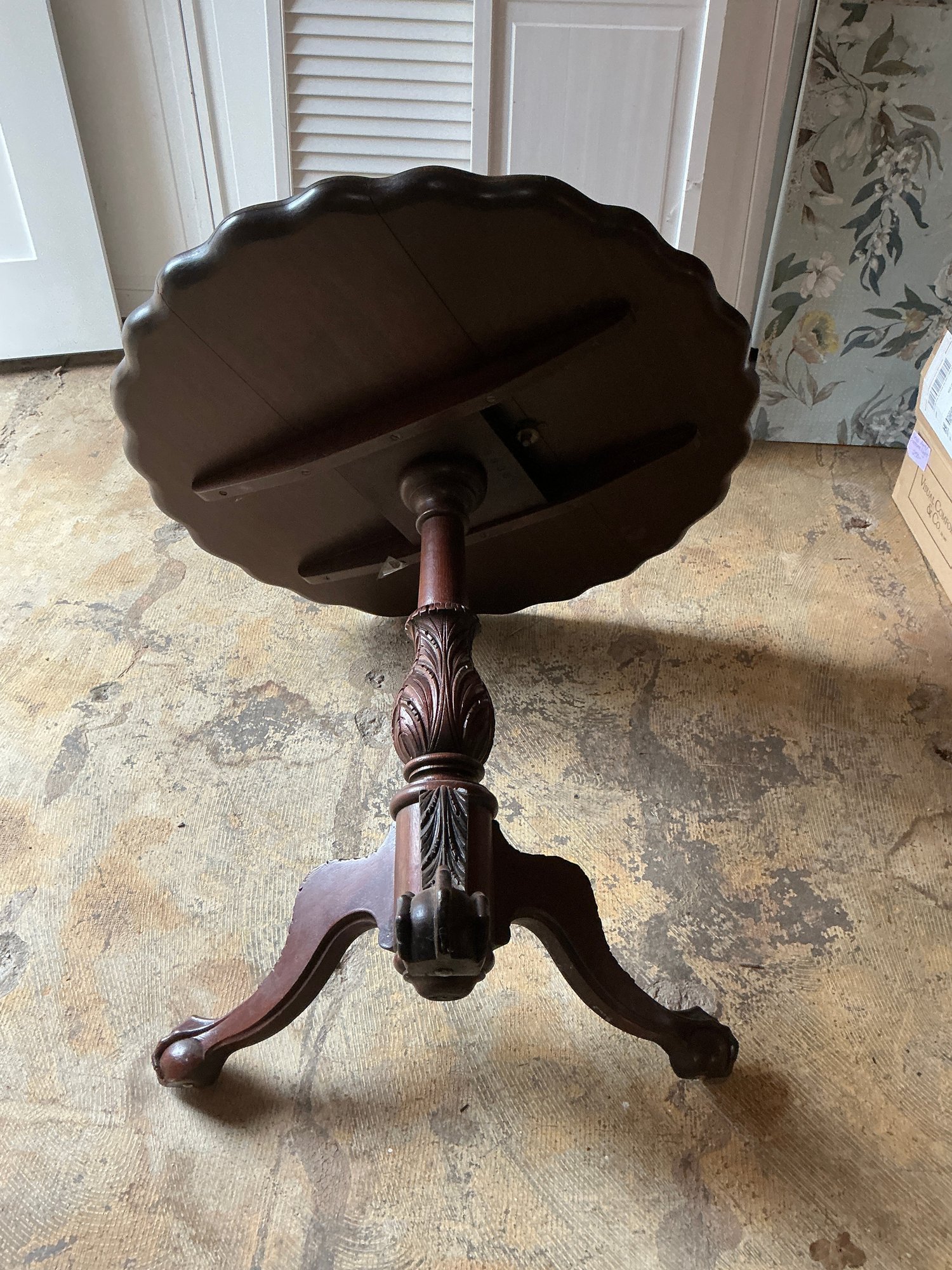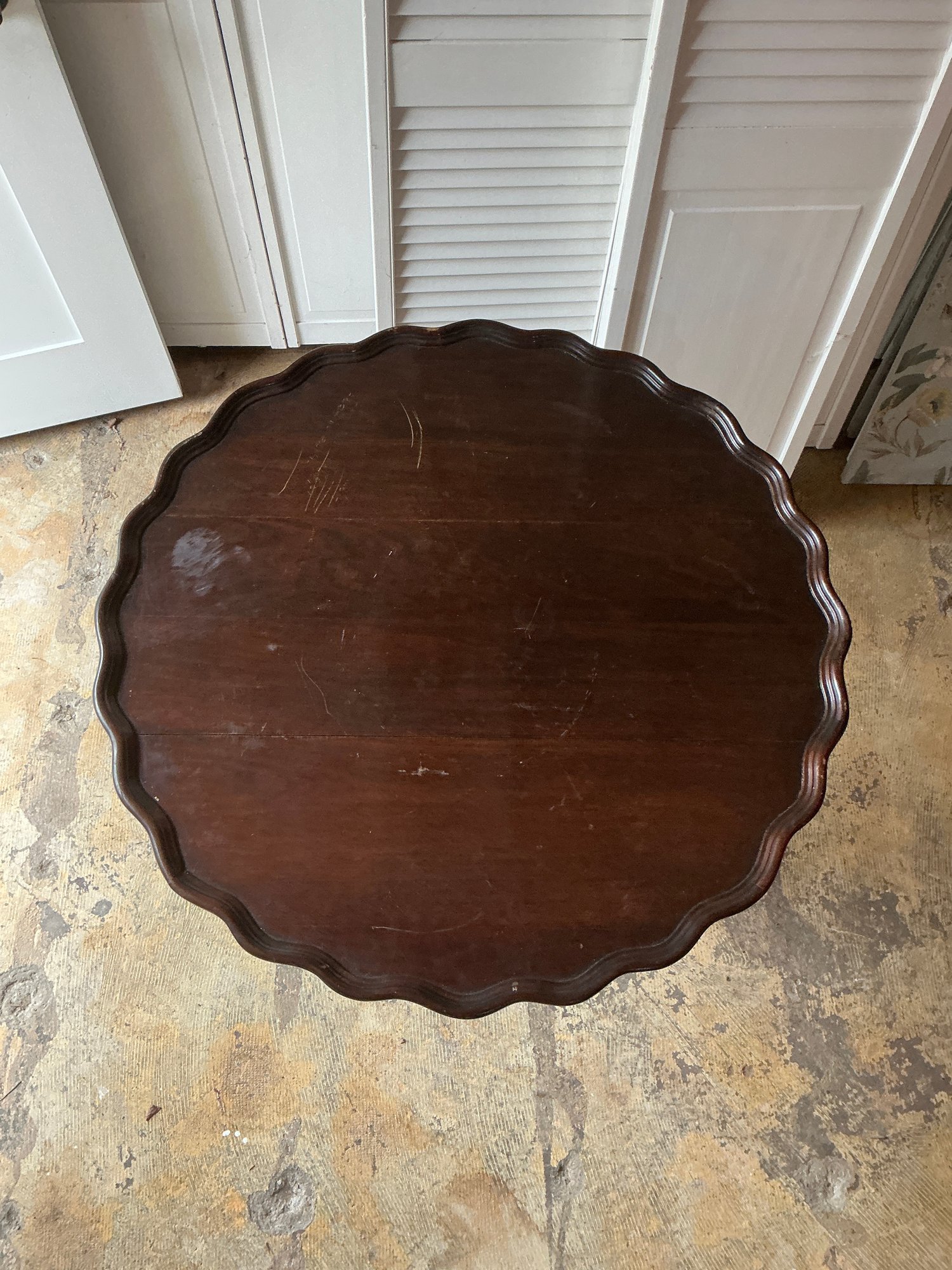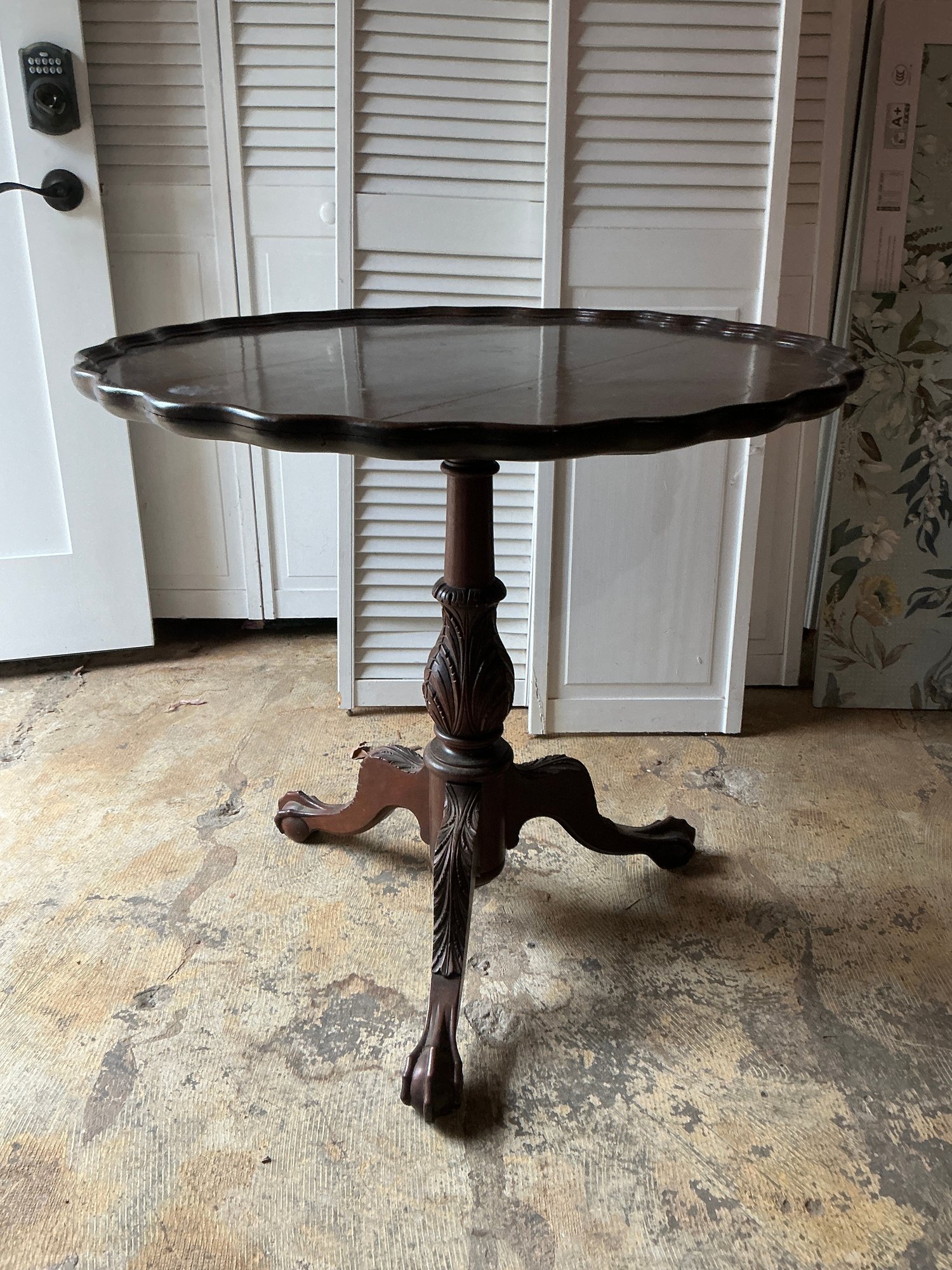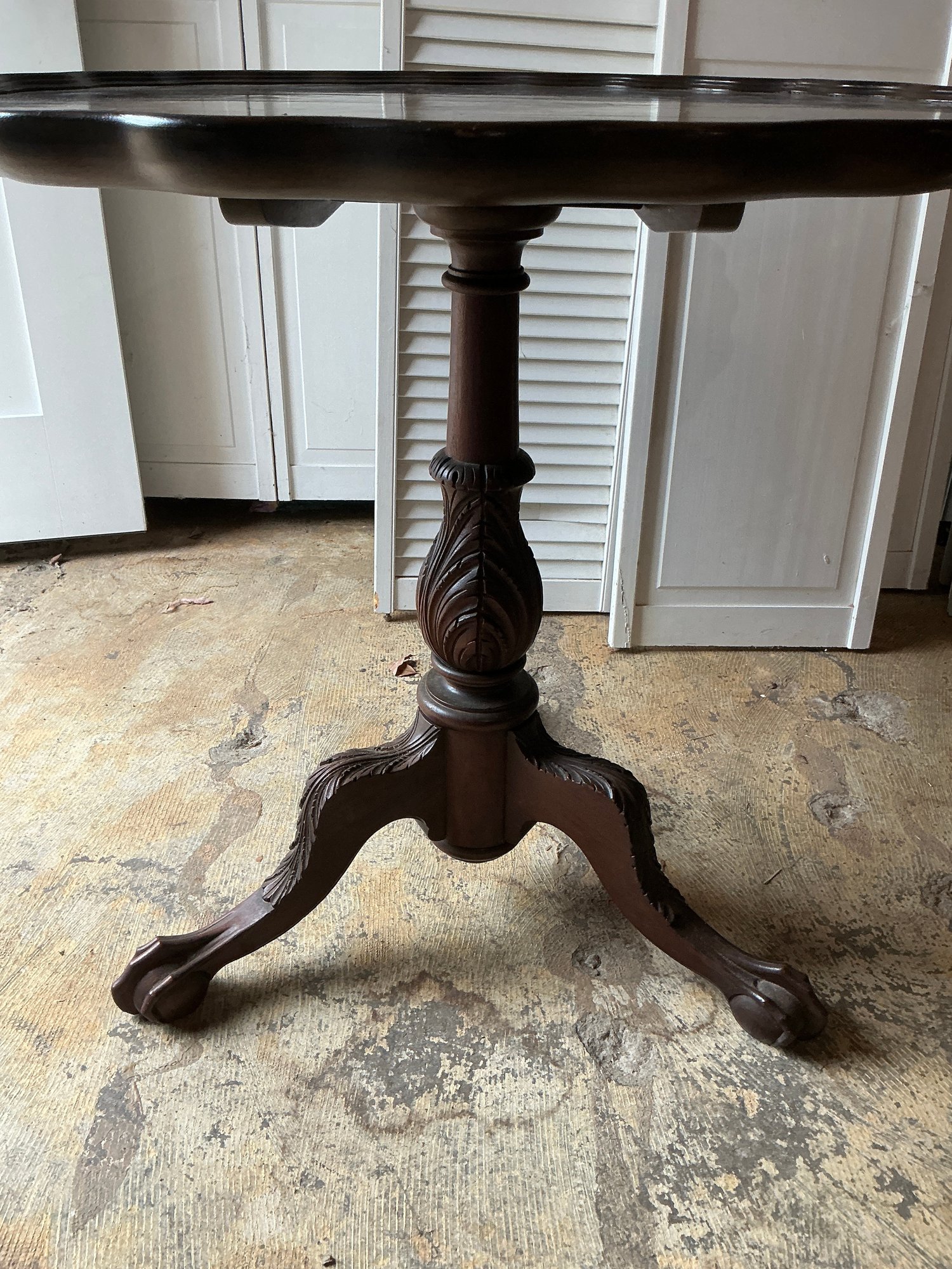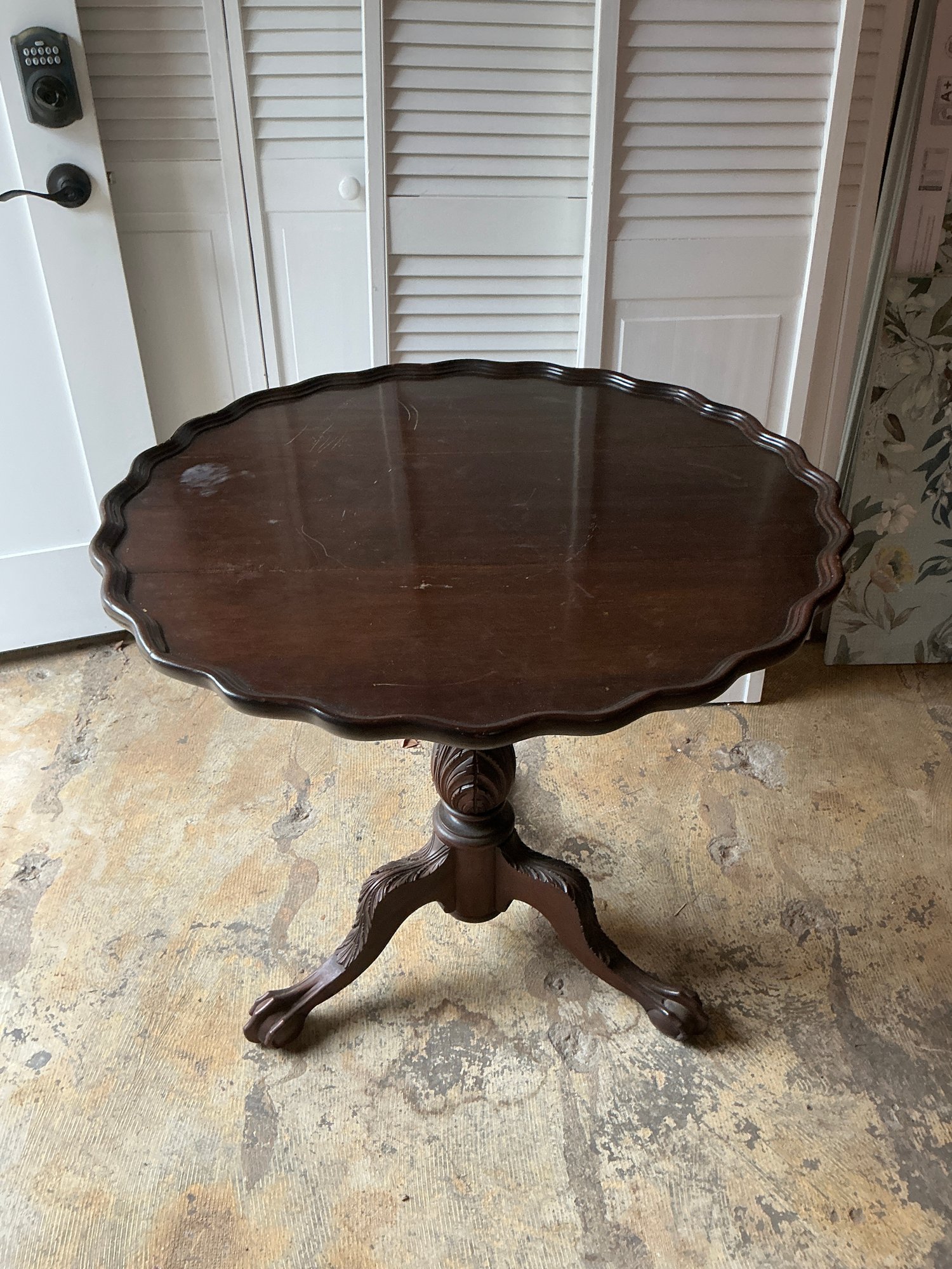 Antique Chippendale Style Mahogany Pie Crust Table. This piece is in good condition with minor scratches from normal use. Measures 32” W x 29” H.